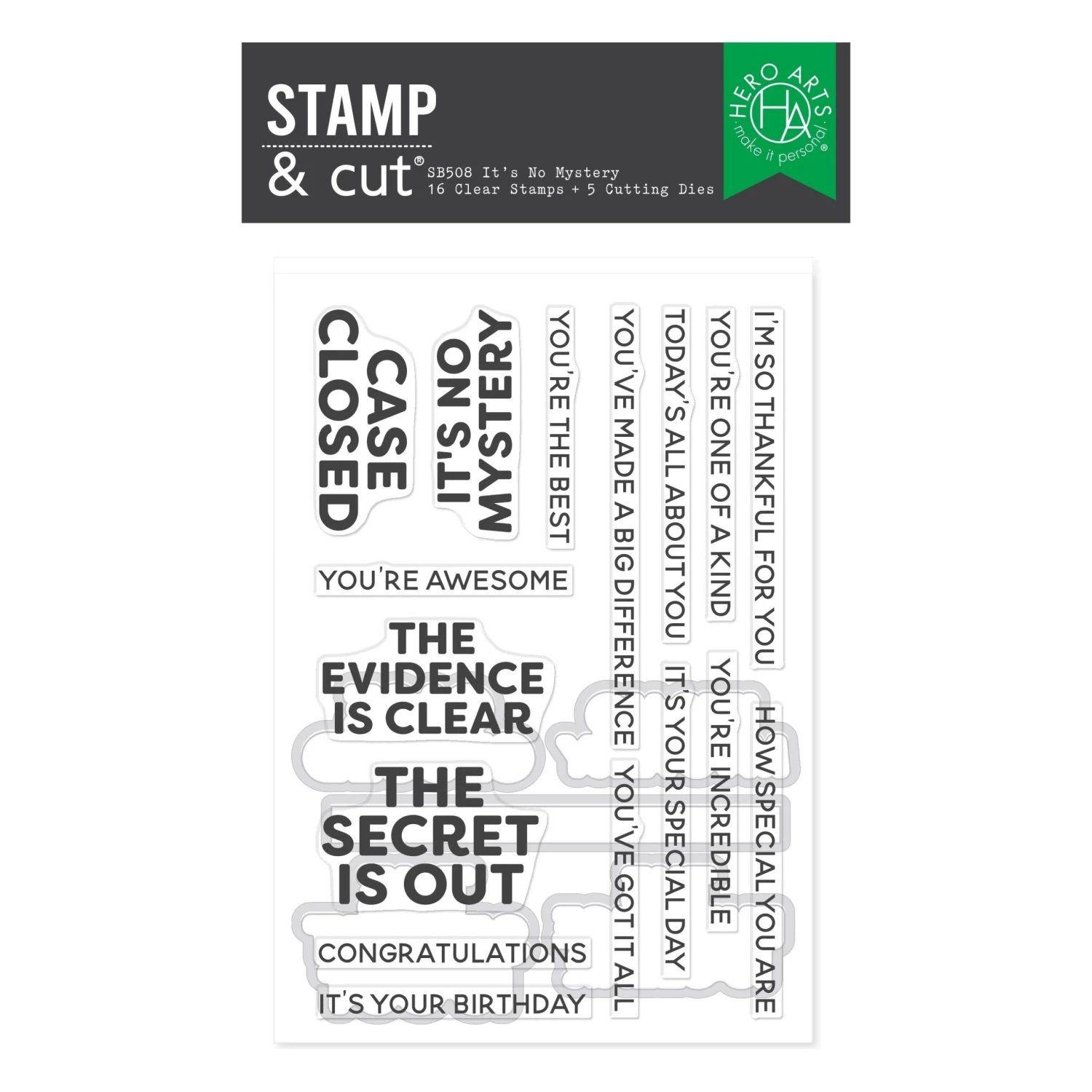 The It’s No Mystery Stamp & Cut Set from the Case Closed Collection includes all the sentiments you need to tell the right story. You’ll get four large mystery-themed sentiments, including ‘The Evidence Is Clear’, ‘The Secret Is Out’, ‘Case Closed’ and ‘It’s a Mystery’ – plus the matching dies to cut them out perfectly. Once you’ve stamped your large sentiment, customize your card for any occasion with the sub-sentiments. Whether you’re celebrating a birthday or showing your thanks, this set of 16 clear stamps solves the mystery of what to say! Combine with DF245 Magnifying Glass Die Set to give your message some extra emphasis.