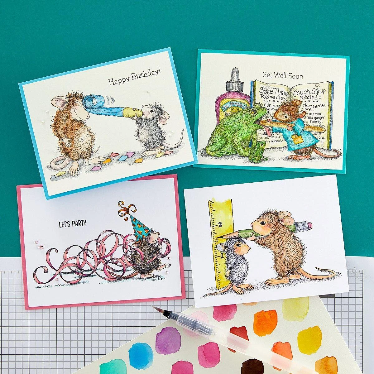 House-Mouse Collector Bundle is from the House-Mouse Designs Everyday Collection. The bundle includes all six cling rubber stamp sets from this collection, RSC-007 Mouse Mail Cling Rubber Stamp, RSC-008 Froggy Throat Cling Rubber Stamp, RSC-009 Party Time! Cling Rubber Stamp, RSC-010 Party Streamers Cling Rubber Stamp, RSC-011 This Tall Cling Rubber Stamp, and RSC-012 Flying to See You Cling Rubber Stamp. Capture all the moments in your life with these sweet sets. Designed to be used with an acrylic block.