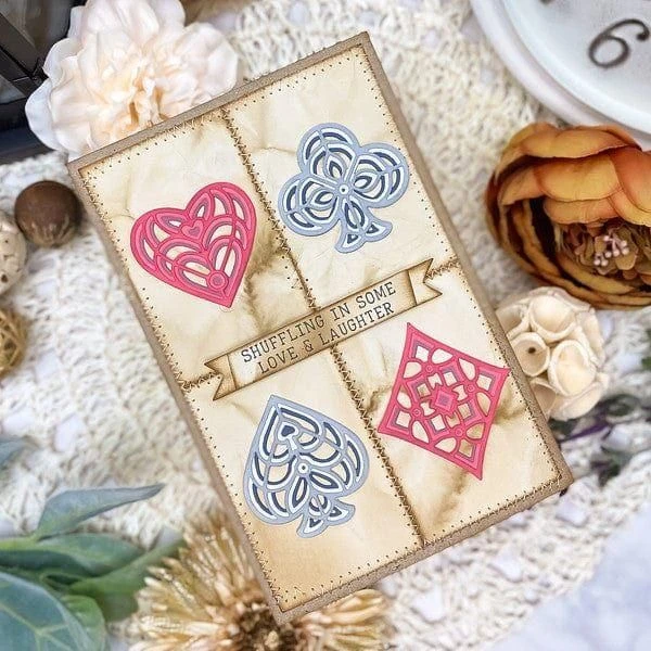 Kaleidoscope Noble Suits Etched Dies are part of the Jack of All Trades Collection by Jaycee Gaspar. Make an ornate and dimensional card suit motifs of the heart, diamond, spade and club for a unique element for your projects. Create a border or a repeat pattern as a background….stunning!