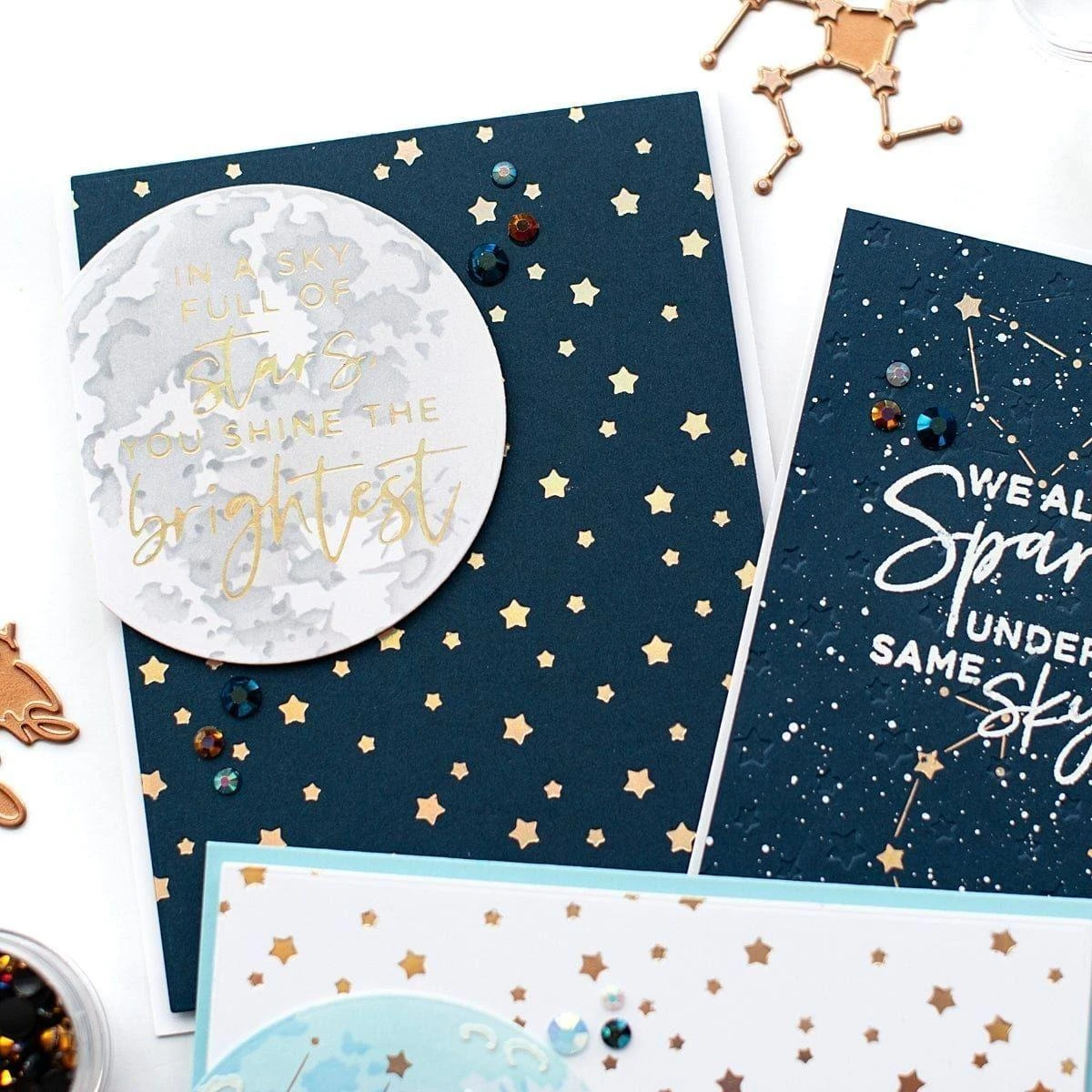 Stargazers and Zodiac fans alike will enjoy the Celestial Zodiacs Collection with unique motifs in each set to use in their creations. With the hot foiling process, these designs will surely shine like the stars. With the addition of stamps, embossing folder and stencils, creating options are out of this world!