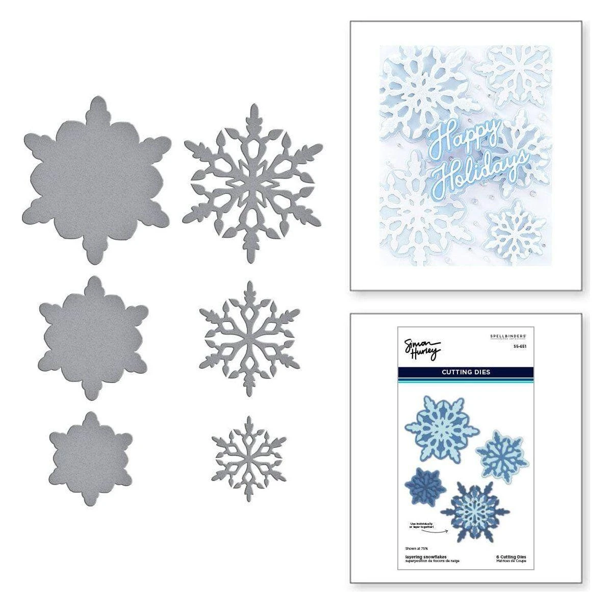 Layering Snowflakes Etched Dies are part of the Let It Snow Collection by Simon Hurley. Create your own kind of dimensional snowflakes by stacking them. With this set of six thin metal cutting dies, you can use papers such as Pop-Up Die Cutting Glitter Foam Sheets, Brushed Cardstock, Mirrored Cardstock and others for a unique design.