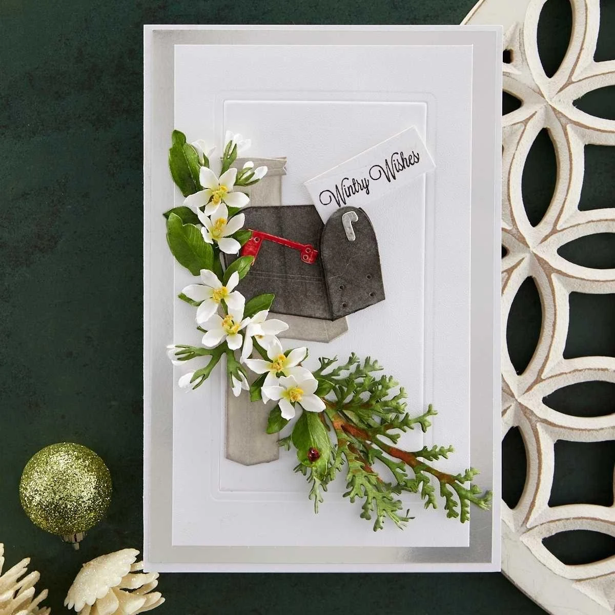 Letterbox Etched Dies is from the Winter Garden Collection by Susan Tierney-Cockburn. Make with this set of seven thin metal cutting dies a letter box with its post. It even has details like a post ledge, a latch, and a mail flag! Assembled size measures 0.125 x 2.75 x 5.00 in./0.30 x 7.00 x 12.70 cm.