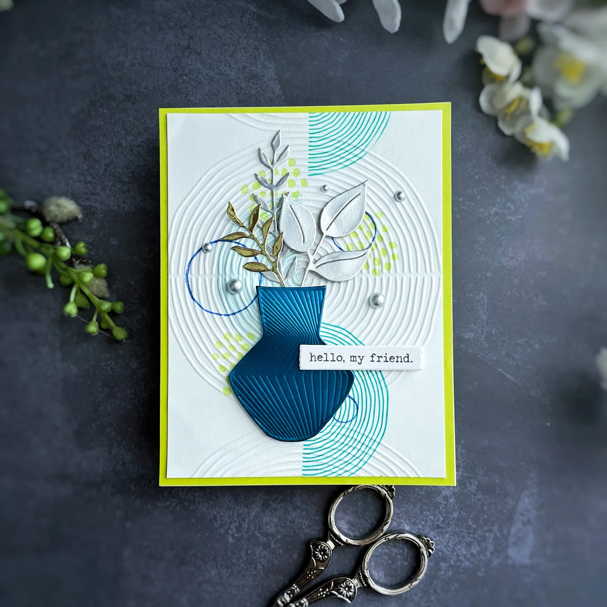 Lined Circles Embossing Folder is from the Modern Botanicals Collection by Dina Wakley. Add fun artsy elements to your projects with this geometric folder. Featuring circles full of loose, sketched concentric lines, the texture and artistic feel of this folder makes a perfect backdrop for cards, art journals, scrapbooks and more. It covers a standard card front from A2 to a 5 x7-inch to even slimline cards.