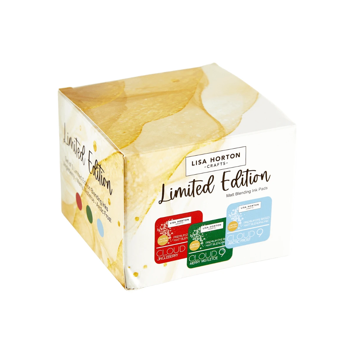 Lisa Horton Crafts Set of 3 Ltd Edition Ink Pads – Introducing the Cloud 9 Matt Blending Ink in Jingleberry, Merry Mistletoe and Arctic Frost from Lisa Horton Crafts—a premium dye-based ink pad designed for versatility and superior performance. This highly pigmented, water-reactive ink blends effortlessly and delivers a matte finish, making it ideal for various water-based techniques and stencil creations. Nontoxic and acid-free, this ink ensures safe and vibrant results on all your crafting projects.