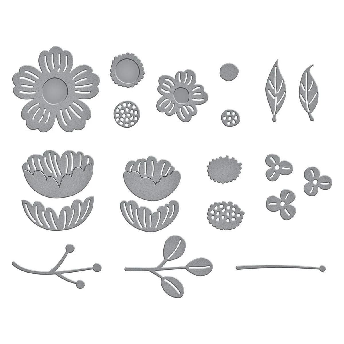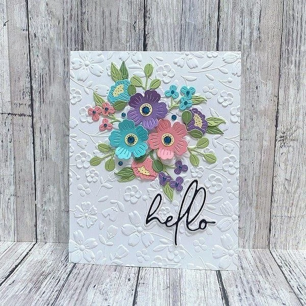 Little Blooms Etched Dies are part of the Out and About Collection. This sweet set of eight thin metal cutting dies assembles into a friendly bouquet of lovely blooms. Use them separately to accent any project. They’re sure to bring a smile!