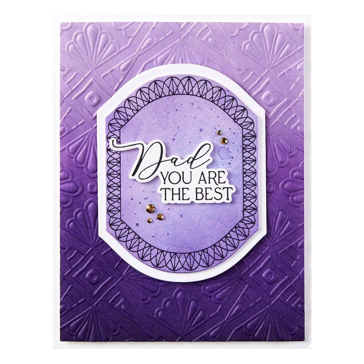 Mirrored Arch Labels Etched Dies is part of the Mirrored Arch Collection. The oval-inspired shape with its flat edge sides makes this a unique frame for any project. There are 16 thin metal cutting dies in gradual sizes to choose from. This collection is centered around this label shape to make many wonderful creations with!