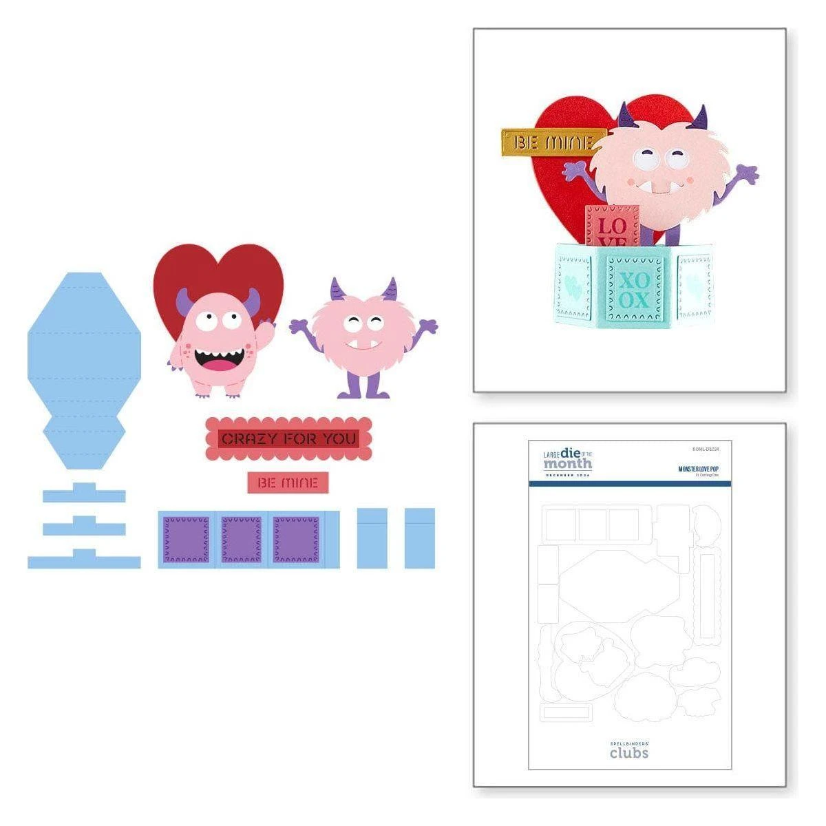Monster Love Pop – December 2024 Large Die of the Month: This adorable 21-piece die set allows you to create fun and interactive pop-up cards with lovable monster characters and Valentine-themed accents. Perfect for crafting heartfelt cards, treat boxes, and decorations for your loved ones. Spread love and joy with this playful and versatile set!