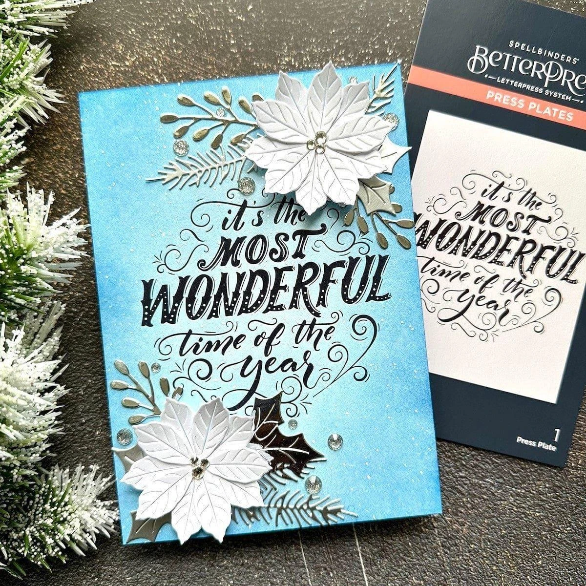 Most Wonderful Time Press Plate is part of the BetterPress Christmas Collection by Spellbinders. The Most Wonderful Time of the Year sentiment is surrounded by playful flourish designs into a circular shape. This stunning sentiment creates an amazing focal point on a card panel. Ink the plate with the BetterPress Ink to be pressed against the BetterPress Cotton Card Panel and Sheets to create a crisp letterpress design.