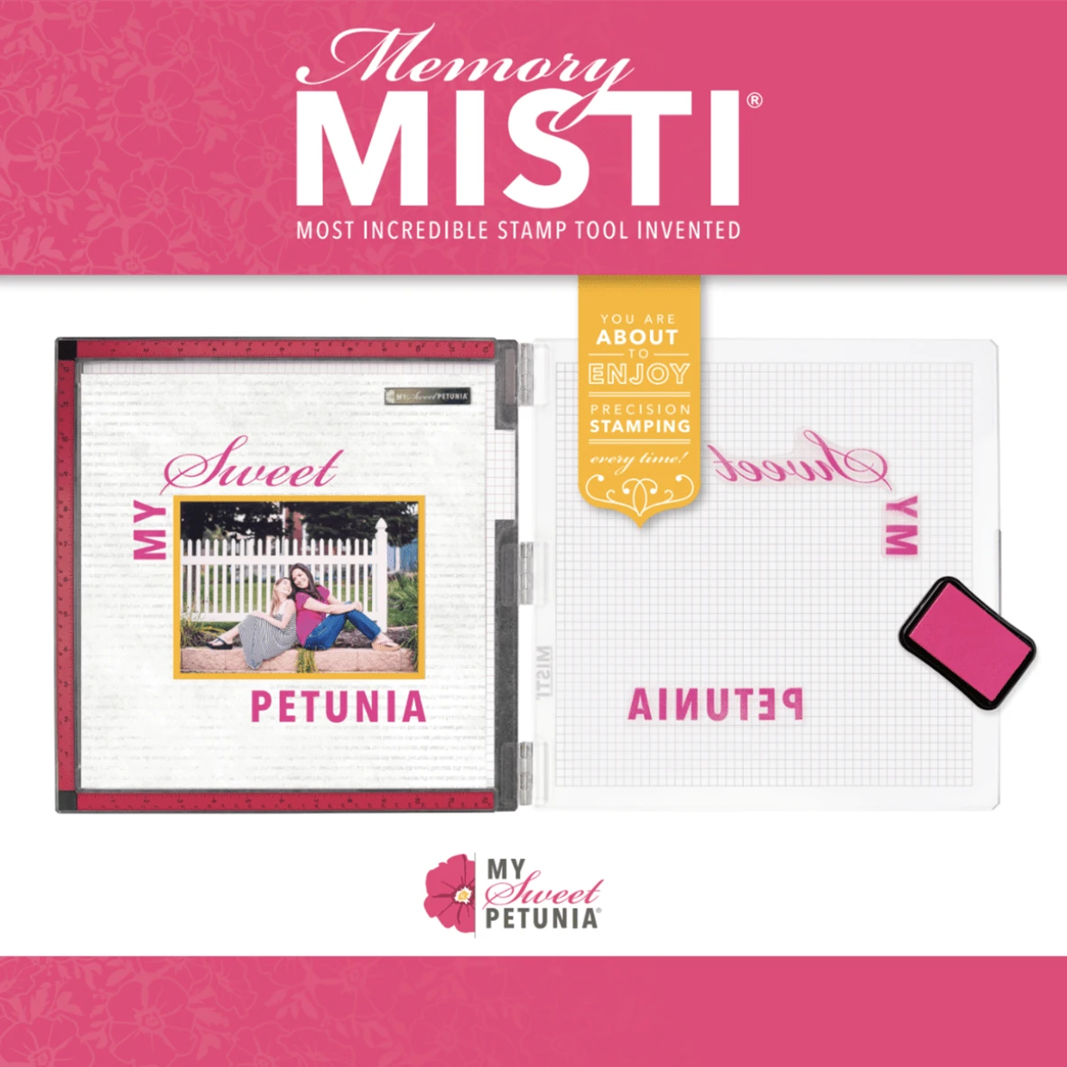 My Sweet Petunia – MISTI – Most Incredible Stamp Tool Invented – 12 x 12: Most Incredible Stamp Tool Invented otherwise known as MISTI from My Sweet Petunia, is now available in the memory version for more efficient scrapbooking stamping. Patented hinge design provides consistent stamping impressions; compatible with red rubber or clear stamps.