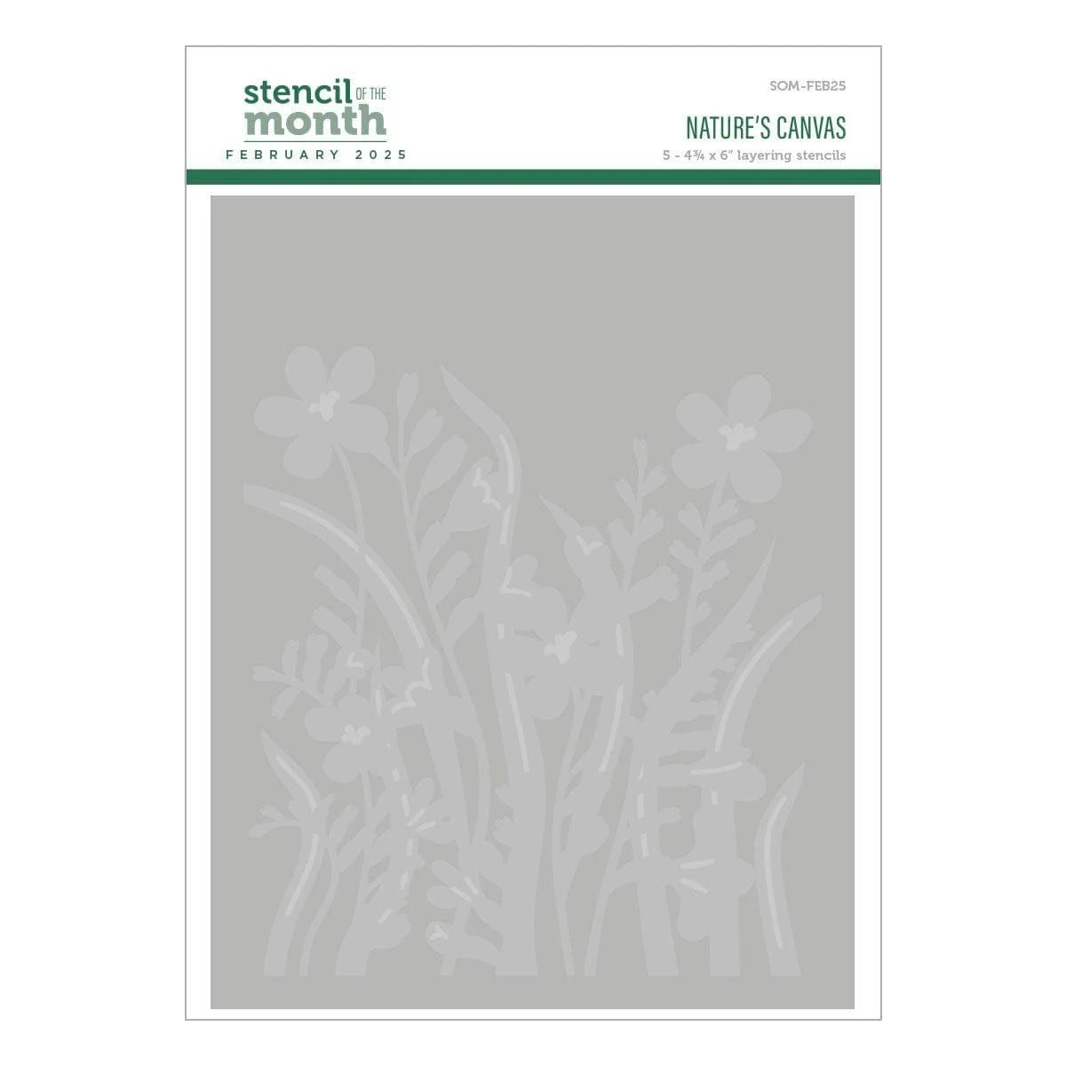 Nature’s Canvas – February 2025 Stencil of the Month: Transform your projects with the February 2025 Stencil of the Month, Nature’s Canvas This stunning set includes 5 layering stencils, each measuring 4.725 ” x 6″, designed to create a beautifully detailed floral frame perfect for a variety of crafting applications.