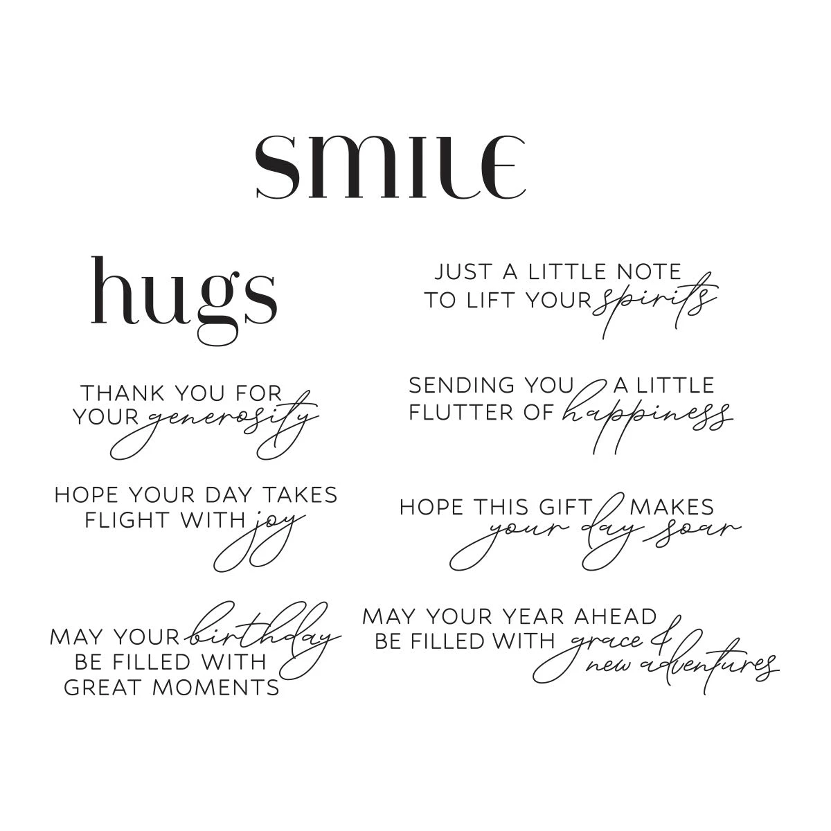 Nature’s Dance – January 2025 Clear Stamp of the Month! Celebrate the beauty of heartfelt sentiments with the January 2025 Clear Stamp of the Month, Nature’s Dance. This versatile set includes 9 clear stamps, featuring elegant handwritten phrases and bold typography designed to uplift, inspire, and add a personal touch to your projects.