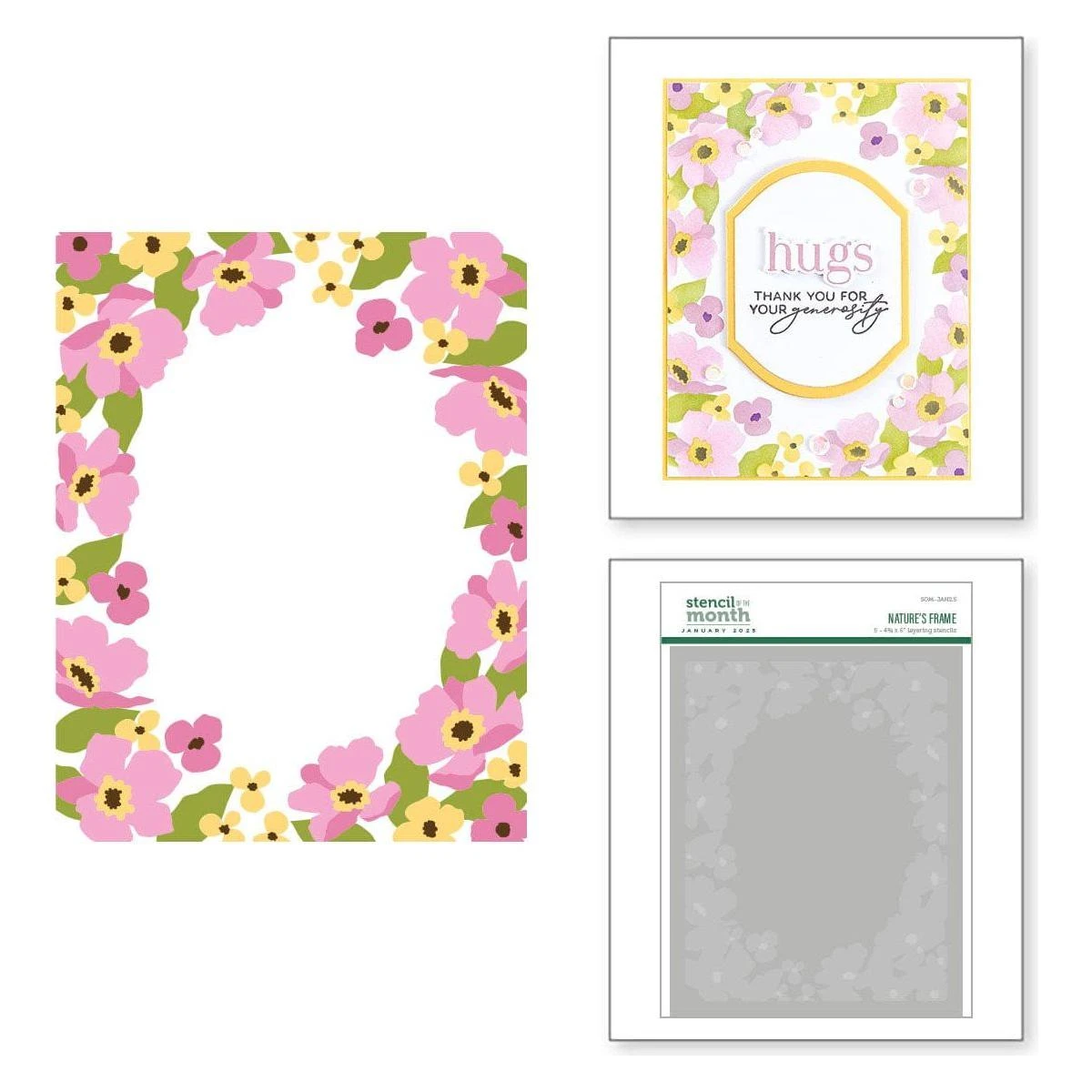 Nature’s Frame – January 2025 Stencil of the Month: Transform your projects with the January 2025 Stencil of the Month, Nature’s Frame. This stunning set includes 5 layering stencils, each measuring 4.75 ” x 6″, designed to create a beautifully detailed floral frame perfect for a variety of crafting applications.
