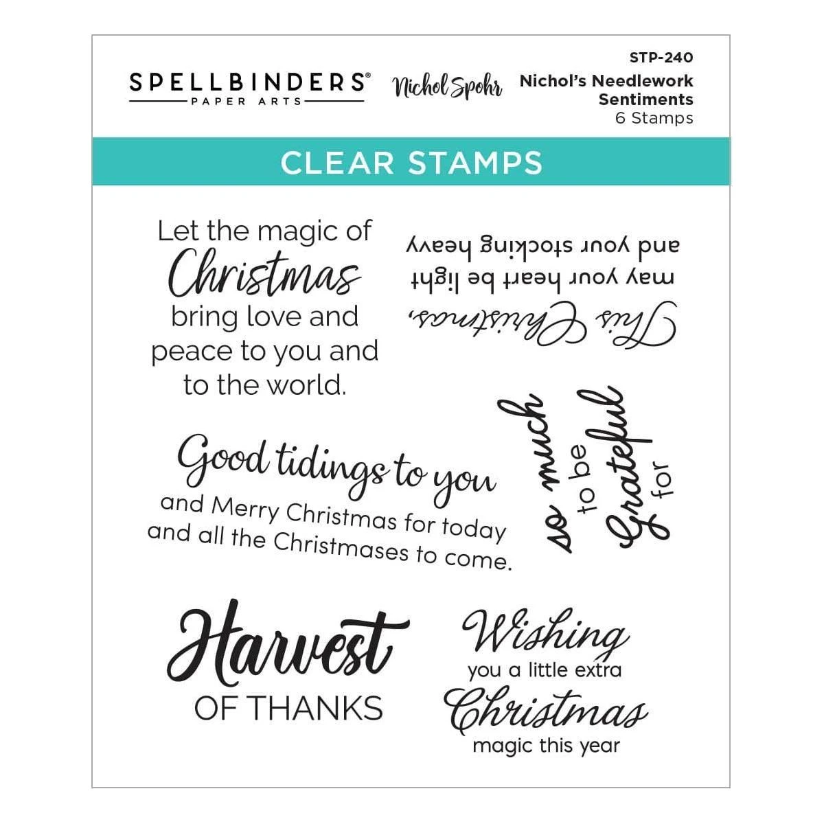 Nichol’s Needlework Sentiments Clear Stamp Set is part of the Nichol’s Needlework Collection by Nichol Spohr and is a set of six stamps. Full of sentiments for fall and holiday seasons with a fun sewing them, this stamp set is perfect for matching with the other sets in this collection. They are made in the USA with high-quality polymer for perfect impressions every time. Designed to be used with a clear stamping block.