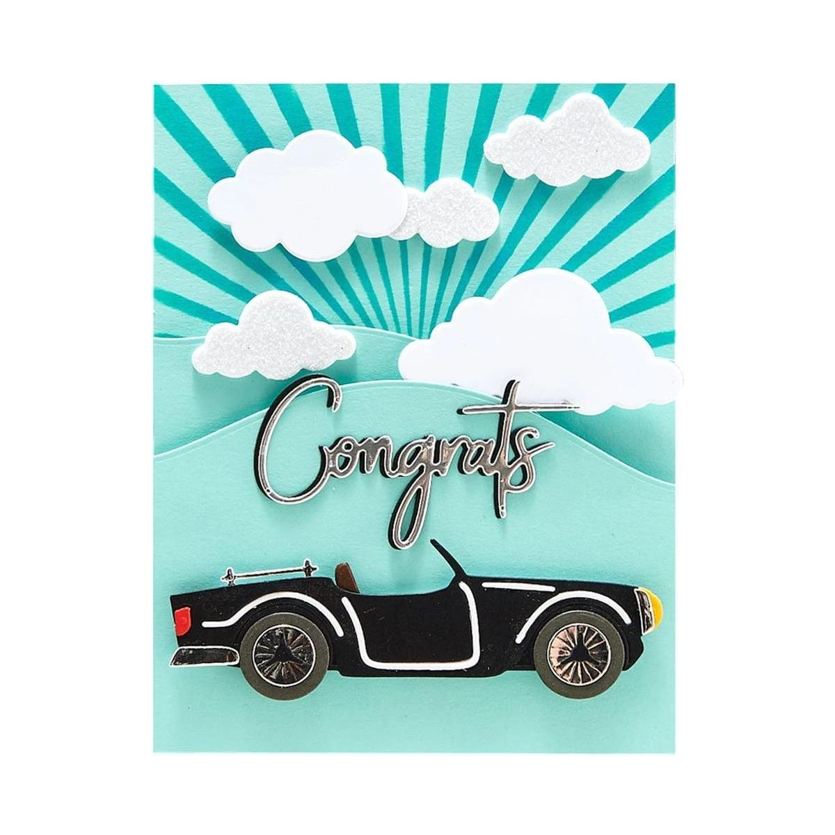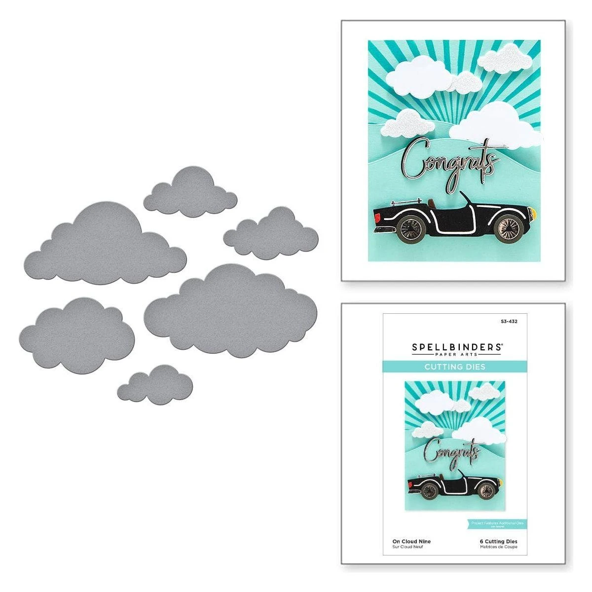 The On Cloud Nine Etched Dies is part of the Open Road Collection. Its set of six thin metal dies can create a fun background of puffy clouds! Lift a few with foam adhesive or shade them with ink to make a dimensional sky.
