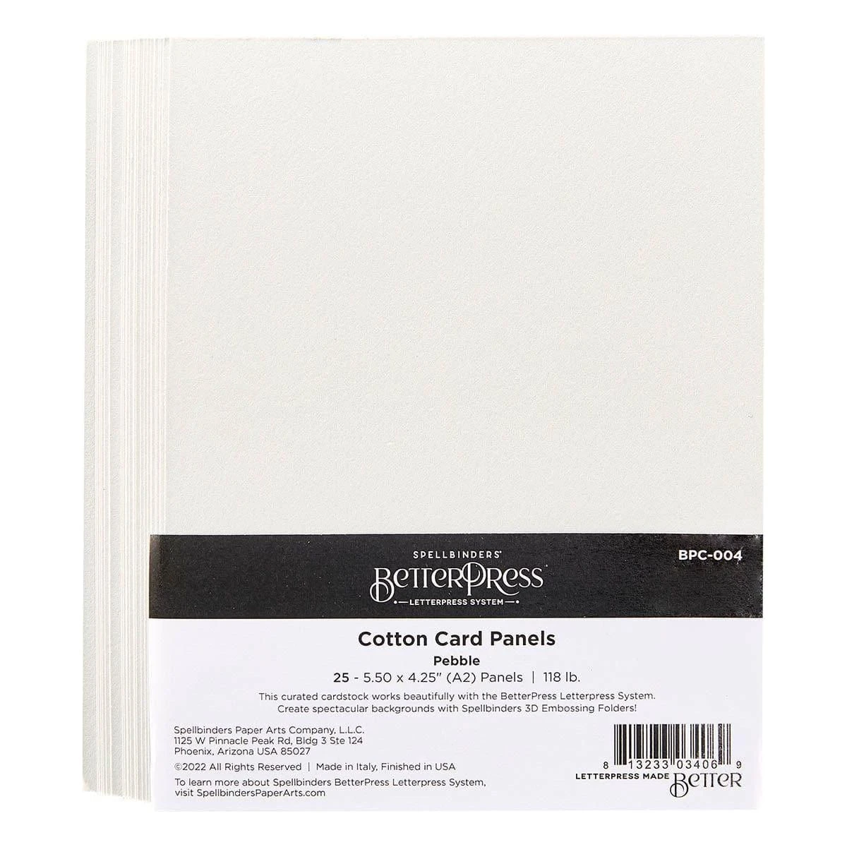 Get ready to elevate your stationery game with Pebble BetterPress A2 Cotton Card Panels! This pack includes 25 panels in a lovely grey tone, each measuring 4.25 x 5.5 inches and crafted from a curated 118lb. cardstock that works beautifully with the BetterPress Letterpress System. But that’s not all! These panels are also compatible with Spellbinders’ 3D Embossing Folders, allowing you to create spectacular sculpted background designs.