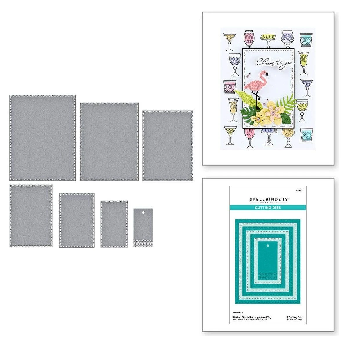 Perfect Touch Rectangles and Tag Etched Dies are from the Happy Hour Collection and a set of seven thin metal cutting dies. The rectangular shapes have decorative edges that give a wonderful finished look. Use them as solid shapes to anchor your design, create frames by nesting two, or make shaped cards. So many versatile design options. The smallest shape is a cute tag to accent a project or gift.