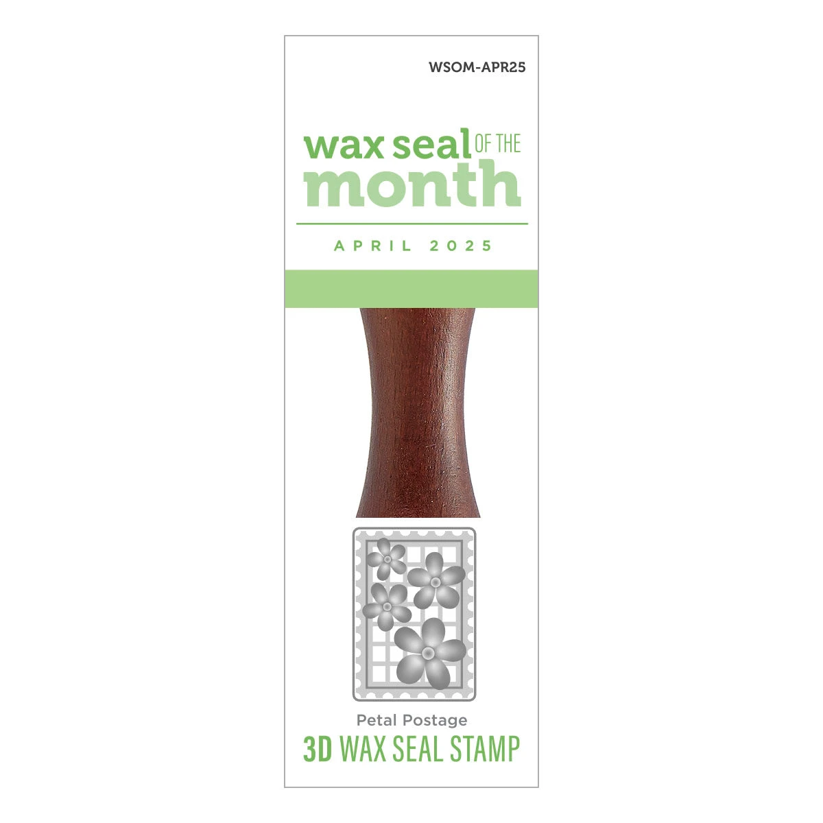 Petal Postage – Wax Seal of the Month (Seal Stamp Only) It has one wooden handle that supports a 1″ x 1.25″ rectangle brass seal stamp design on its end.