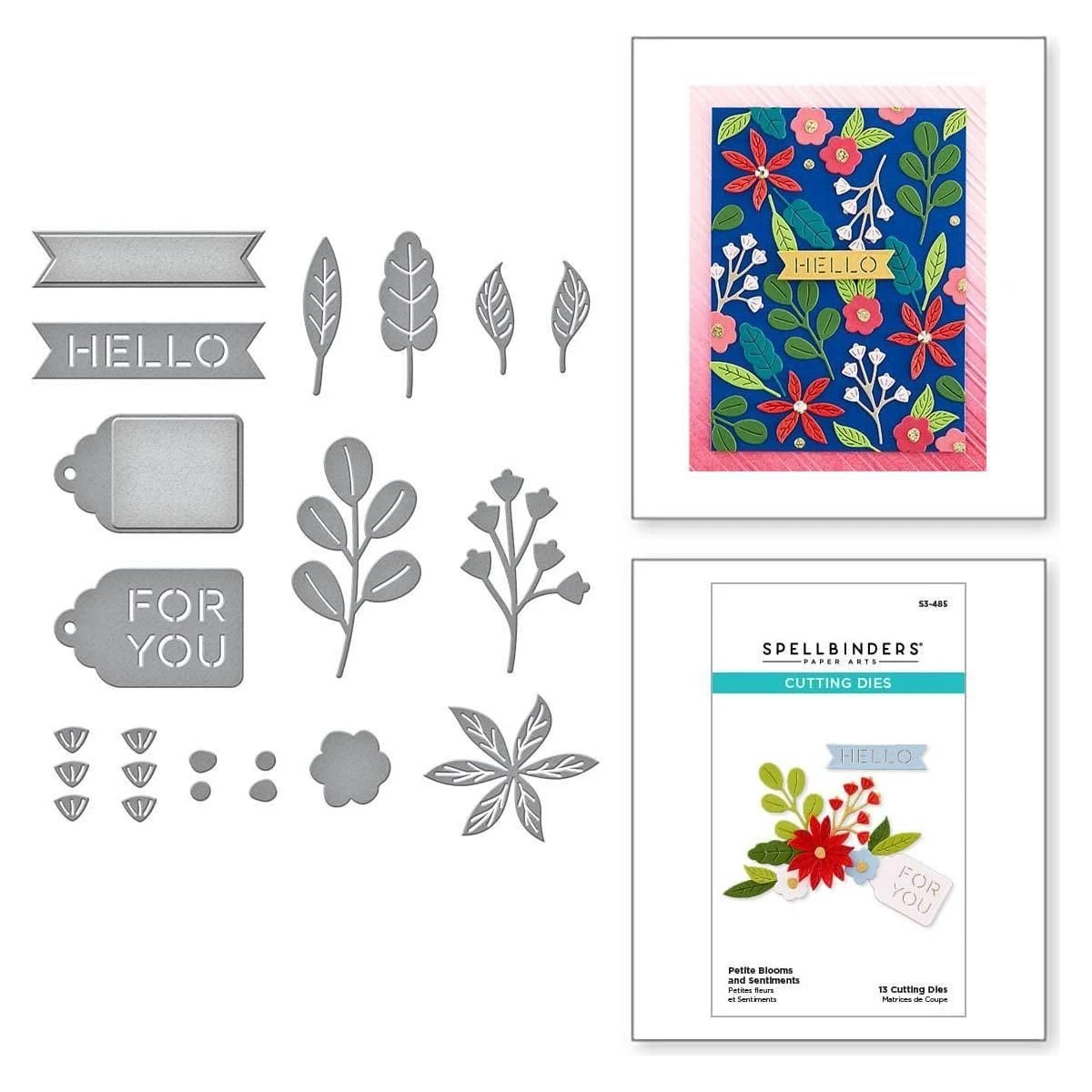 Petite Blooms and Sentiments Etched Dies are from the Merry & Bright Collection with a set of 13 thin metal cutting dies. So many blooms, leaves and floral accents to create sweet flower clusters! Included are sentiments in a banner or tag format, Hello and For You. A wonderful addition to your cardmaking supply!