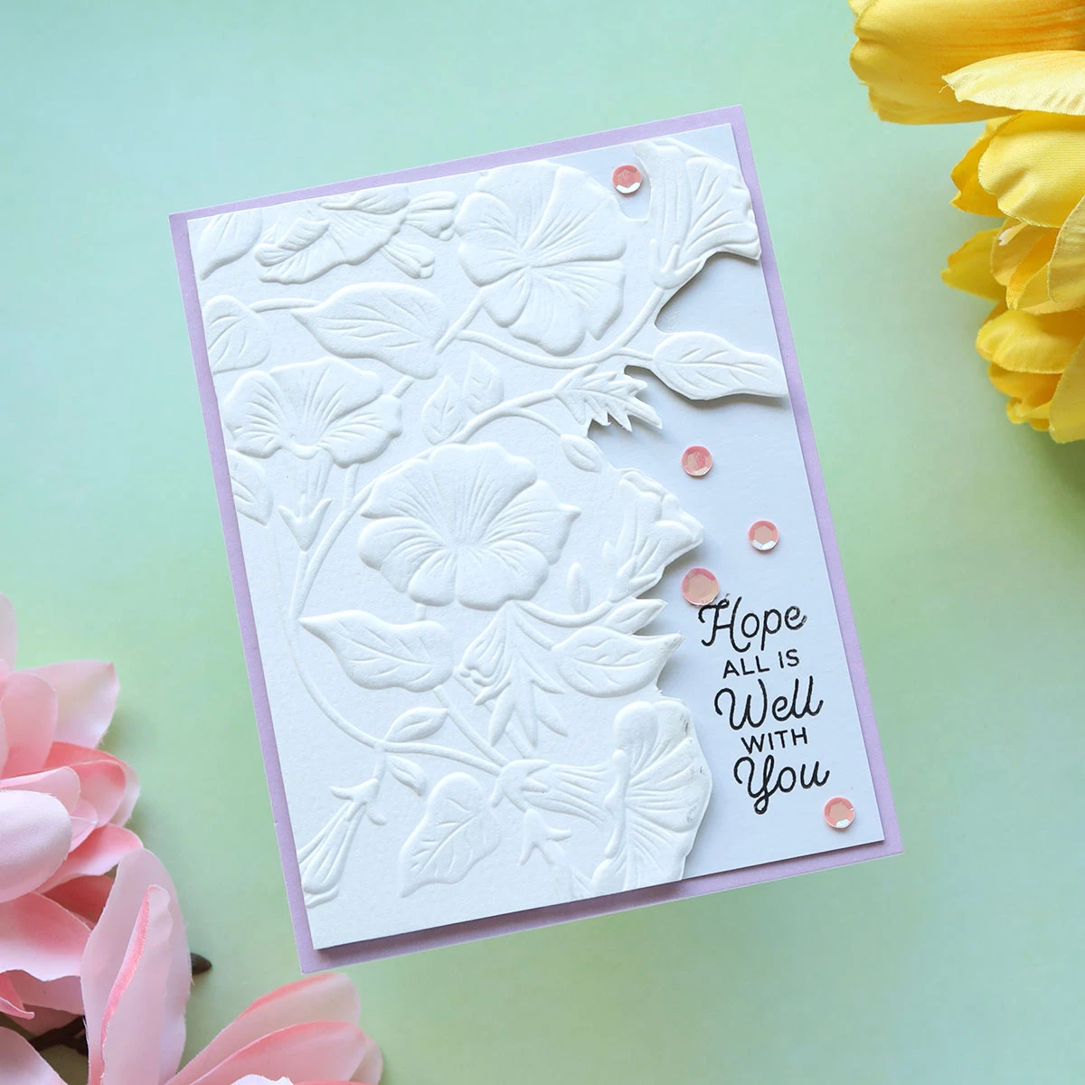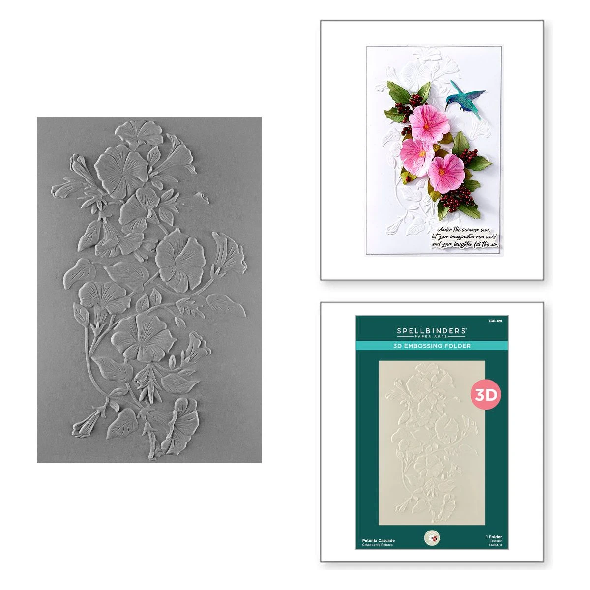 Petunia Cascade 3D Embossing Folder is a 5.50 x 8.50-inch embossing folder that has a beautiful cascade of lovely Petunia blooms in the center of the folder. What a wonderful focal point!