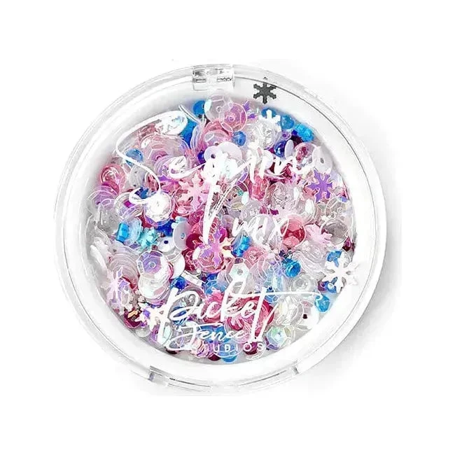 Candied Snow Sequin Mix Plus: The Candied Snow Sequin Mix Plus from Picket Fence Studios includes white, silver, and blue sequins in various shapes and sizes, including snowflakes, circles, and stars. This mix is perfect for adding a touch of sparkle and winter wonderland to your Christmas-themed cards, scrapbook pages, or other paper crafts.