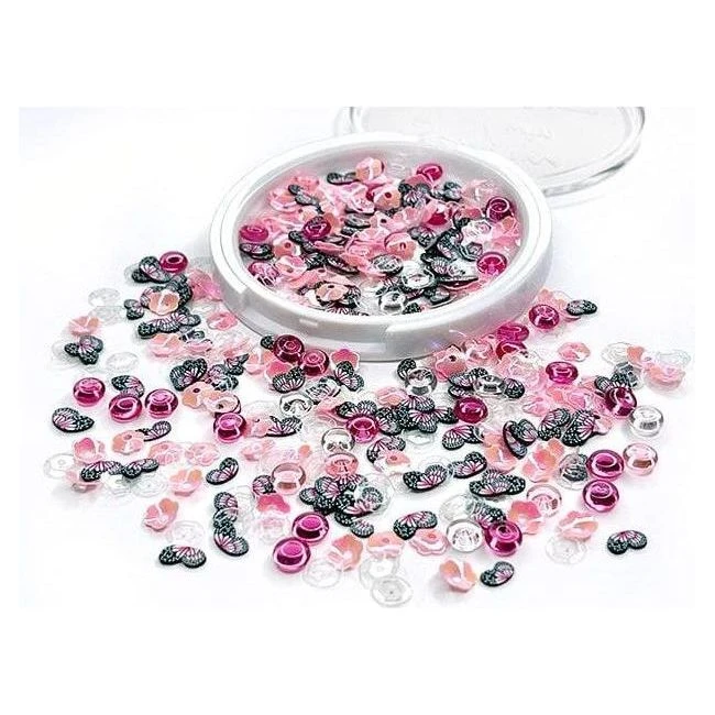 Fly with Me Sequin Mix Plus: The Fly with Me Sequin Mix Plus from Picket Fence Studios includes sequins in shades of pinks, white, and iridescent with adorable butterfly wings. This mix is perfect for adding a touch of fun to your paper crafts.
