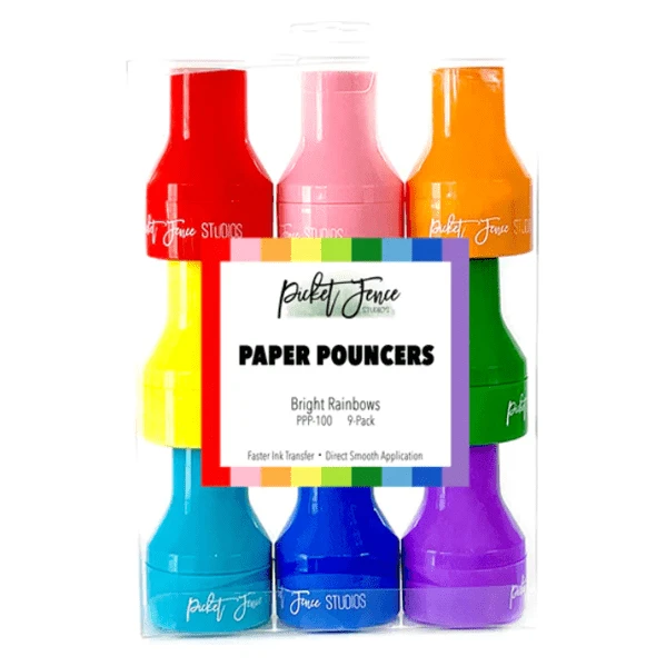Paper Pouncers – Bright Rainbow 9pk: Experience a revolutionary approach to applying ink on die cuts, stencils, and various paper crafting projects with Paper Pouncers! Say goodbye to traditional inking tools because these premium super-soft SPONGE applicators offer a whole new level of performance. Designed exclusively by Picket Fence Studios, Paper Pouncers are here to make ink application easier, faster, and more comfortable for your hands.