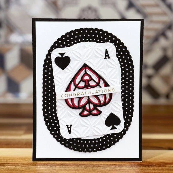 Pip & Rank Etched Dies are from the Jack of All Trades Collection by Jaycee Gaspar. Use individually to accent your projects or make a deck of cards with this set of five thin metal cutting dies. Add S7-266 Reversible Royal Court Etched Dies Set to create stunning and layered face cards of the King, Queen and Jack. Customize your deck of cards with this fun set!