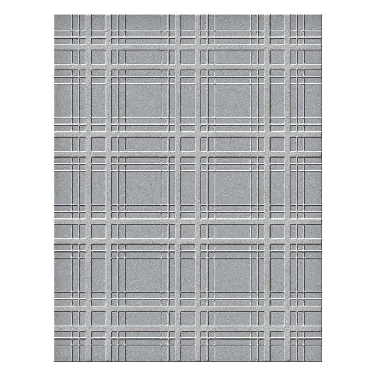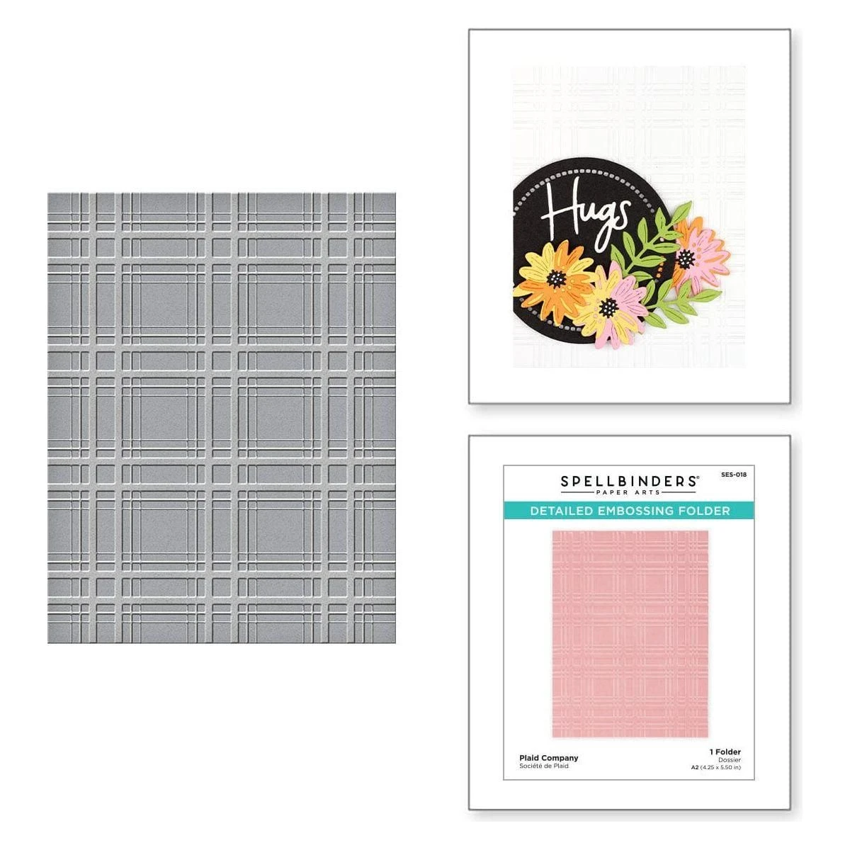The Plaid Company Embossing Folder embosses a wonderful plaid pattern that fits an A2-sized (4.25 x 5.5-inch) card front. It adds texture and dimension to your paper. Create a letter press effect by applying ink to one side of the folder. Or highlight the embossed design with ink.