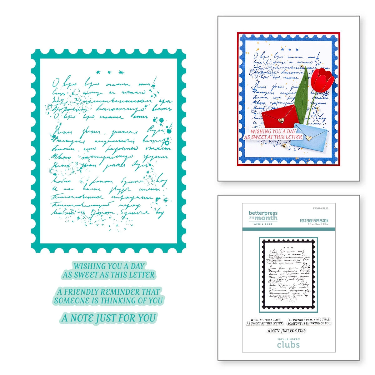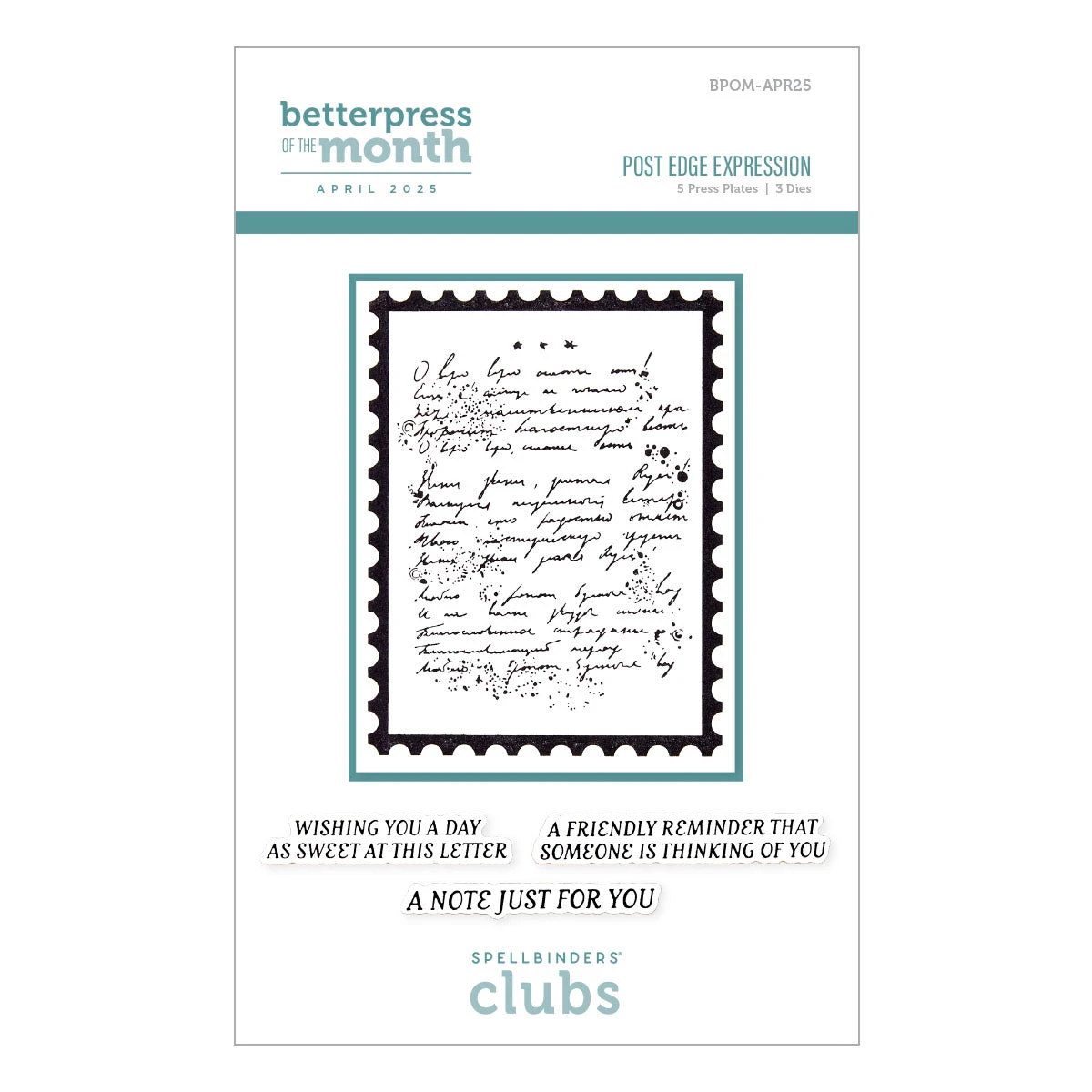 Share a heartfelt message with timeless charm using the Post Edge Expression set, featured as the April 2025 BetterPress of the Month. This beautiful collection includes 5 press plates and 3 coordinating sentiments, all designed around a vintage-inspired handwritten letter framed with a classic postage edge. Perfect for cards, notes, and keepsakes, the set also features warm greetings like “Wishing You a Day as Sweet as This Letter” and “A Note Just for You.” Bring a touch of nostalgia and elegance to your handmade projects with this versatile and meaningful set.