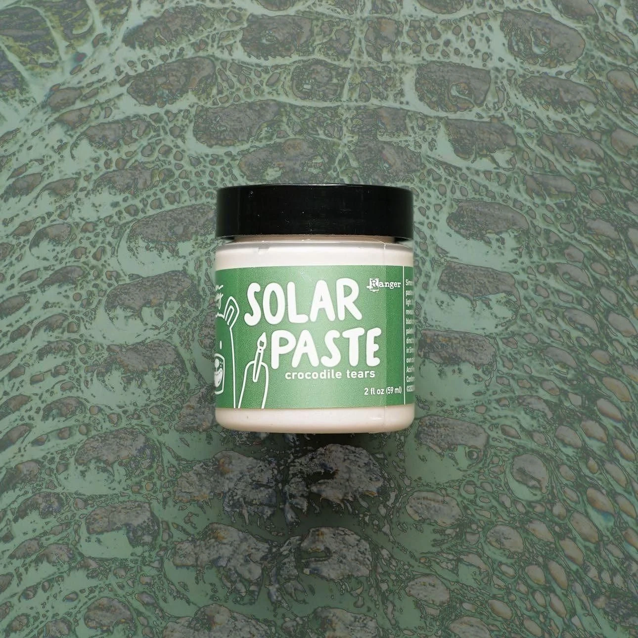 - Apply Solar Paste over top of inks to create a colorful background that changes color when tilted towards the light. Apply through a stencil with a palette knife for definition or apply a thin layer direct to surface for a metallic paint-like finish.