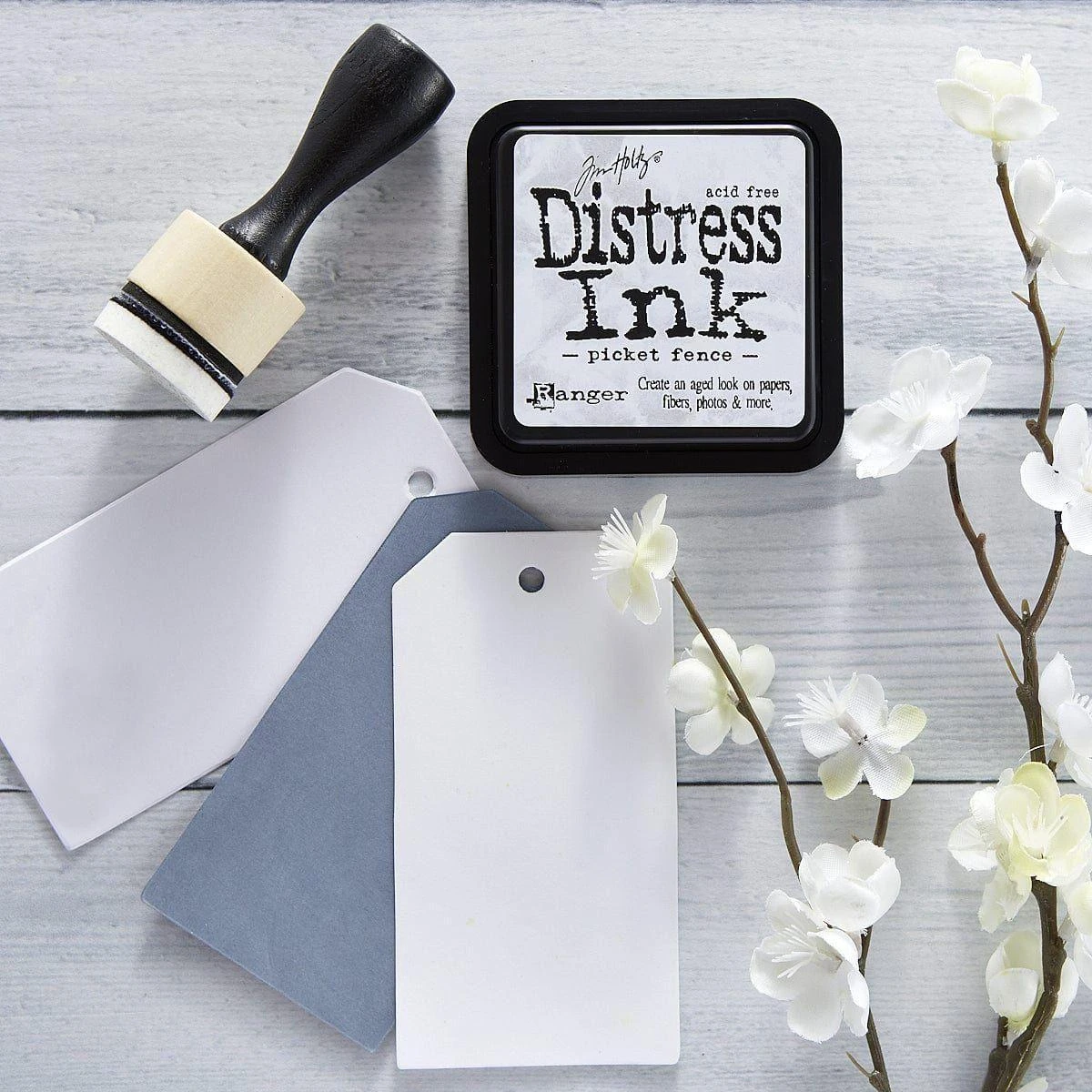 Ranger – Picket Fence Distress Ink Pad is the perfect white pigment ink with Distress Ink formulation. Water-based and non toxic. Ink pad is approximately 3 x 3 inches