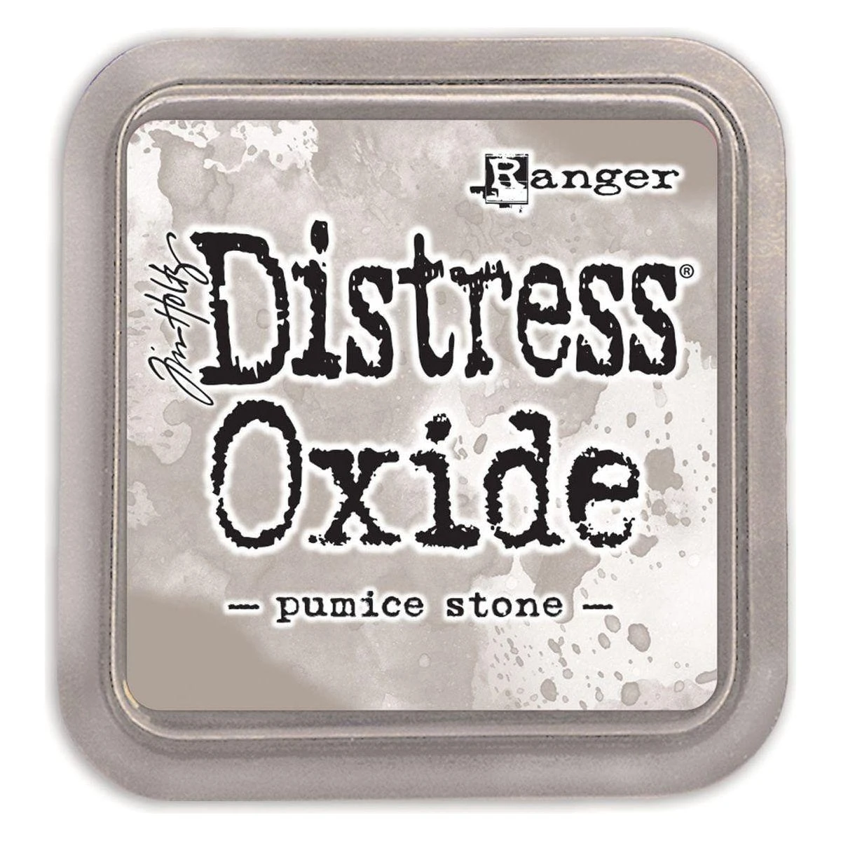 Ranger – Pumice Stone Distress Oxide Ink Pad is a water-reactive dye & pigment ink fusion that creates an oxidized effect when sprayed with water. Use with stamps, stencils, and direct to surface. Blend using ink blending tools.