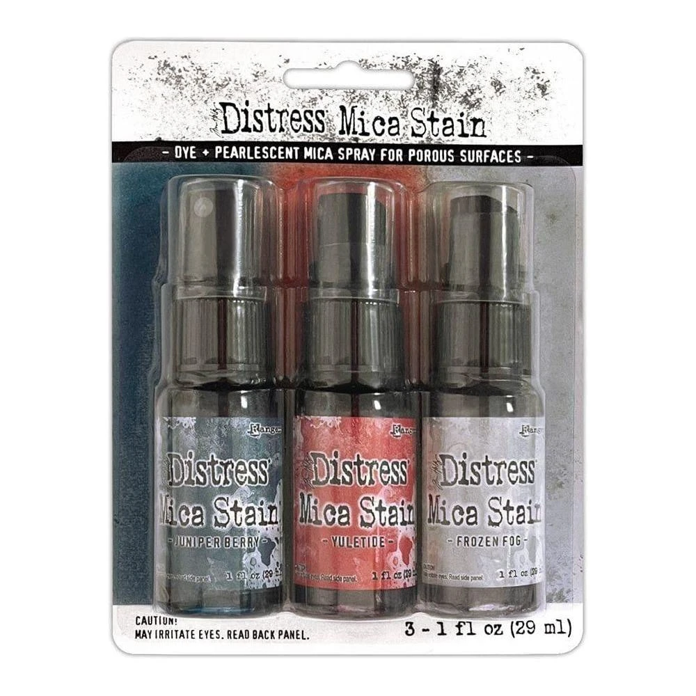 Ranger – Tim Holtz Distress® Mica Stains infuse vibrant, pearlescent radiance into your paper crafts or mixed media undertakings. These versatile Mica Stains securely bond to a variety of surfaces, such as paper, canvas, wood, fabric, and other porous materials. They pair beautifully with Distress Ink, Oxide, Spray Stain, and Oxide Spray, enabling you to craft stunning, radiant effects and captivating backgrounds. Each set comprises three 1 fl oz bottles, featuring the enchanting hues of Juniper Berry, Yuletide, and Frozen Fog.