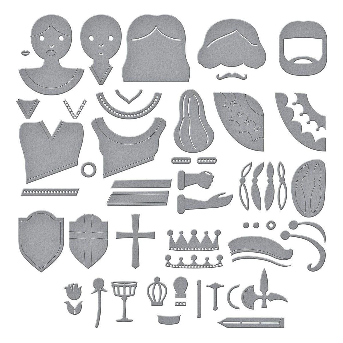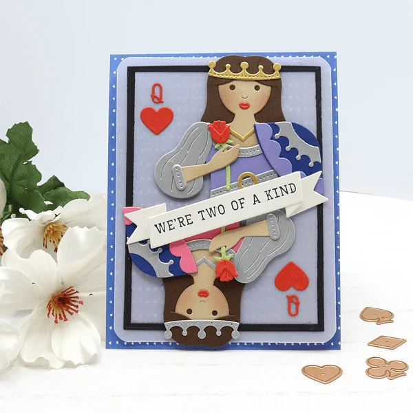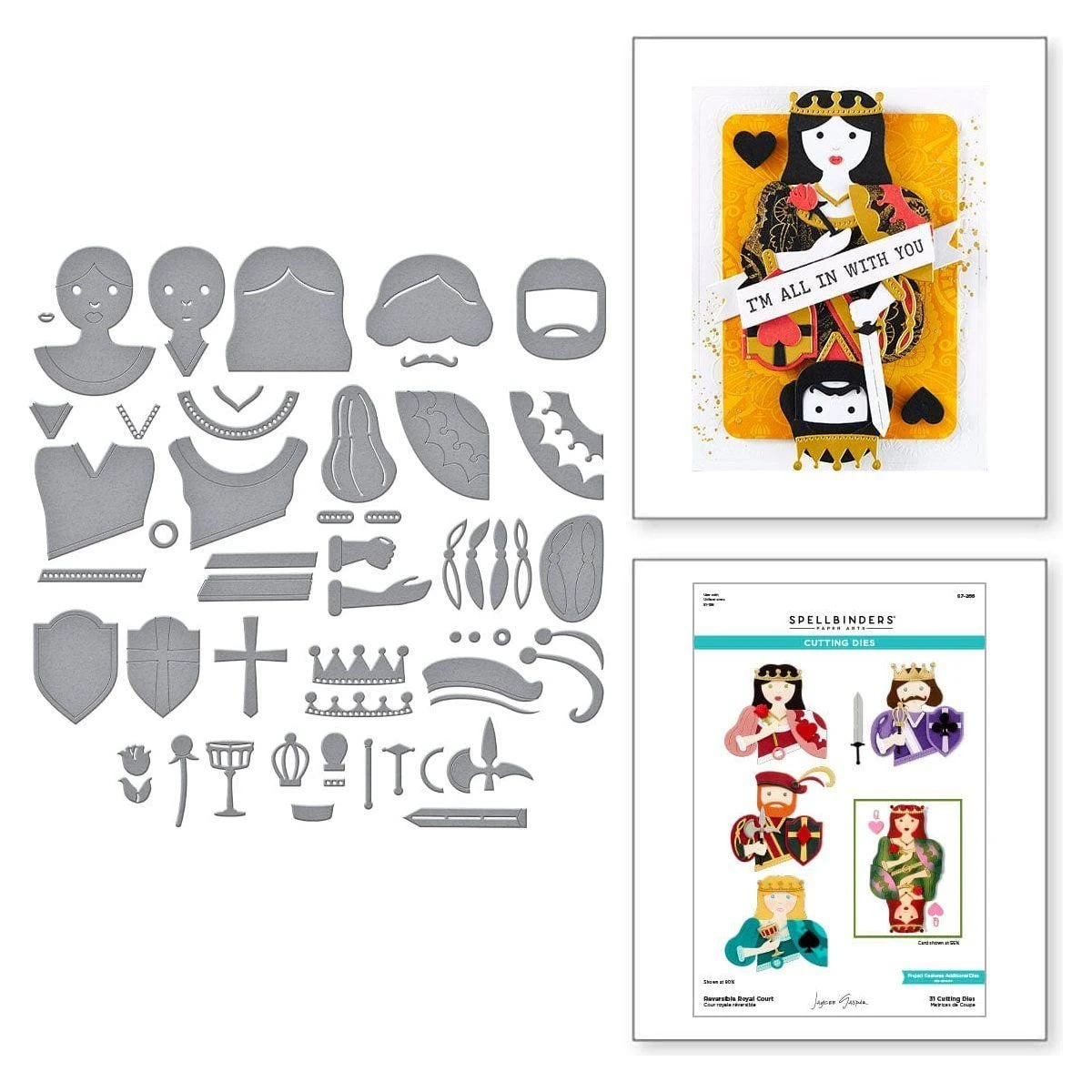 Reversible Royal Court Etched Dies are part of the Jack of All Trades Collection by Jaycee Gaspar. Create stunning and layered face cards with this set of 31 thin metal cutting dies! All the pieces are included for a detailed and reversible King, Queen and Jack, just like playing cards! For the card suits, letters and numbers, add in S1-159 Pip & Rank Etched Dies Set.