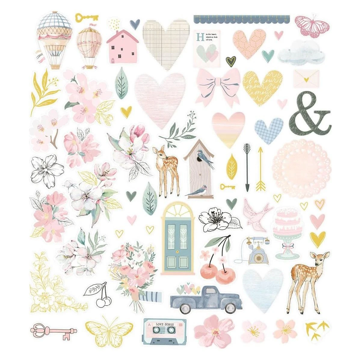 The Heartfelt Cardstock Diecut Ephemera from Rosie’s Studio is filled with 142 pieces. Delicate cherry blossom, darling fawns, and hints of romance tell the story of love and appreciation for both family members and friends. This is such a pretty collection that will bring you delight when creating your handmade cards and scrapbook pages. Made from 180gsm weight cardstock that is acid free and features gold foil. Plus, you receive 2 pieces of each diecut shape in each set.