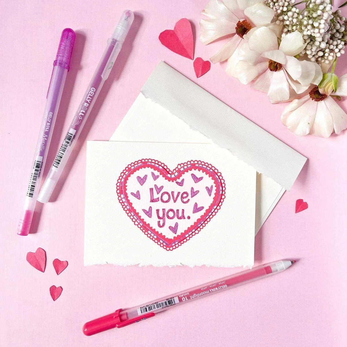 Sakura Gelly Roll Moods – Love (Pink Metallic, Red Moonlight, Rose Stardust) Renowned for their smooth and consistent ink flow, Gelly Roll Pens glide effortlessly on paper, producing vivid, rich lines that stand out vibrantly. Whether you’re sketching, crafting, journaling, or simply expressing yourself, Sakura’s archival-quality gel ink ensures your work retains its brilliance over time. Each pen is ergonomically designed for comfort, allowing you to unleash your imagination without fatigue. With a dazzling array of colors and various tip sizes available, the possibilities are endless. Transform your ideas into breathtaking realities with Sakura Brand Gelly Roll Pens, the ultimate companion for all your creative ventures.