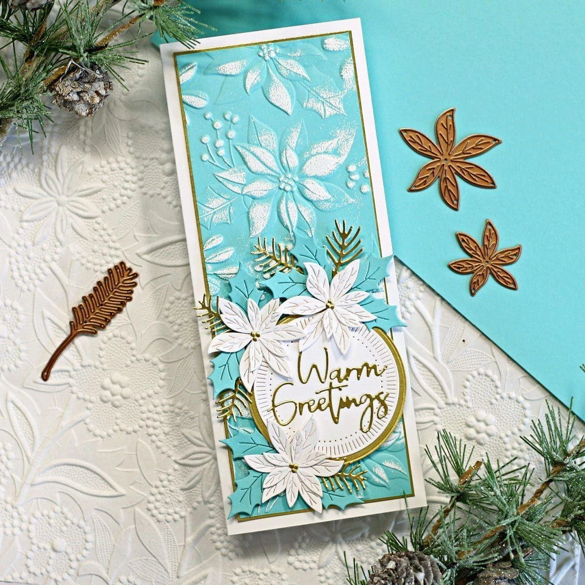 Scenic Poinsettias 3D Embossing Folder is a 5.50 x 8.50-inch embossing folder that is full of festive poinsettia blooms in all over pattern.
