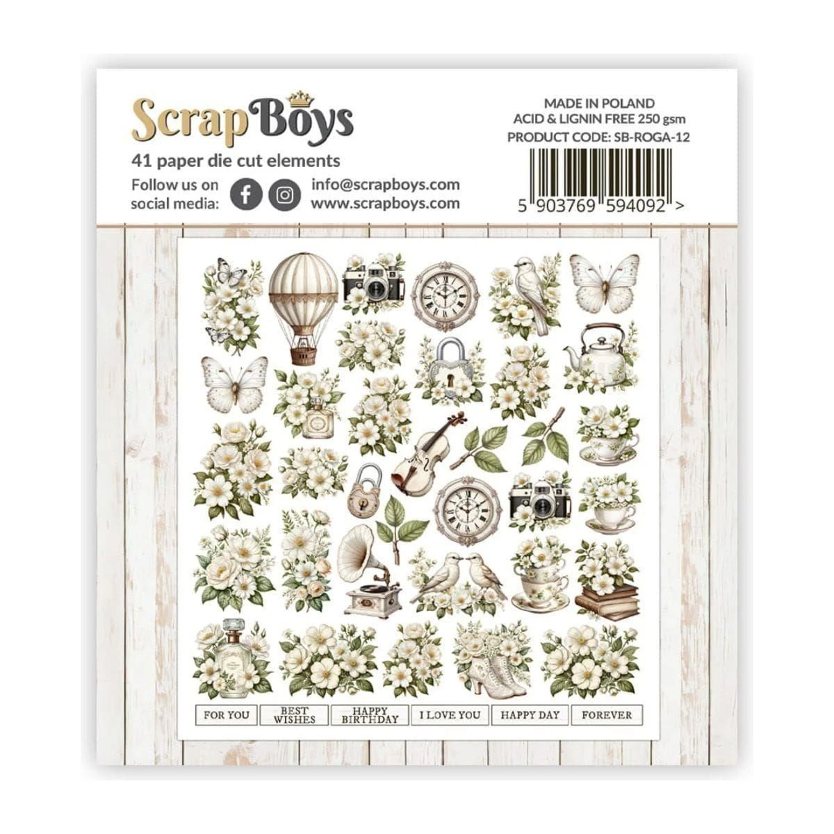 ScrapBoys – Romantic Garden Die Cuts– The Romantic Garden collection from ScrapBoys is a stunning array of die cuts that capture the serene beauty of a blooming garden. With delicate florals, vintage cameras, elegant cakes, and charming details like pianos and doves, this set is perfect for adding a touch of elegance to your crafts. The soft, neutral color palette paired with intricate patterns makes this collection ideal for wedding projects, romantic scrapbooks, and any creation that seeks to evoke the timeless allure of a tranquil garden in full bloom.