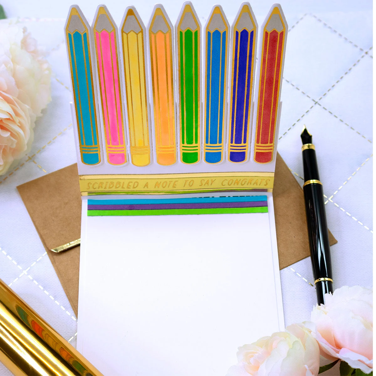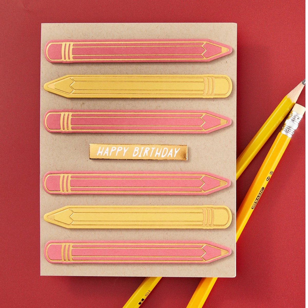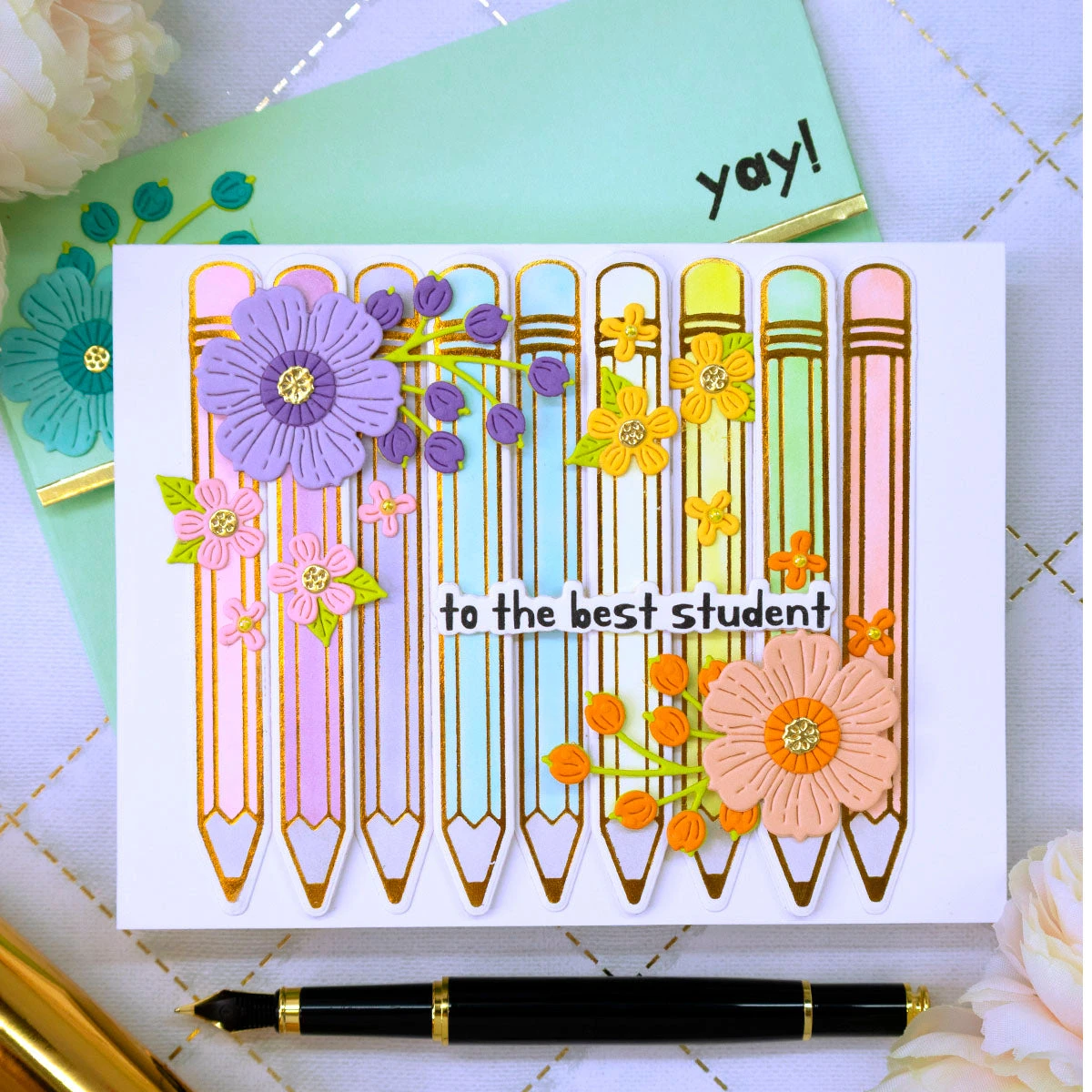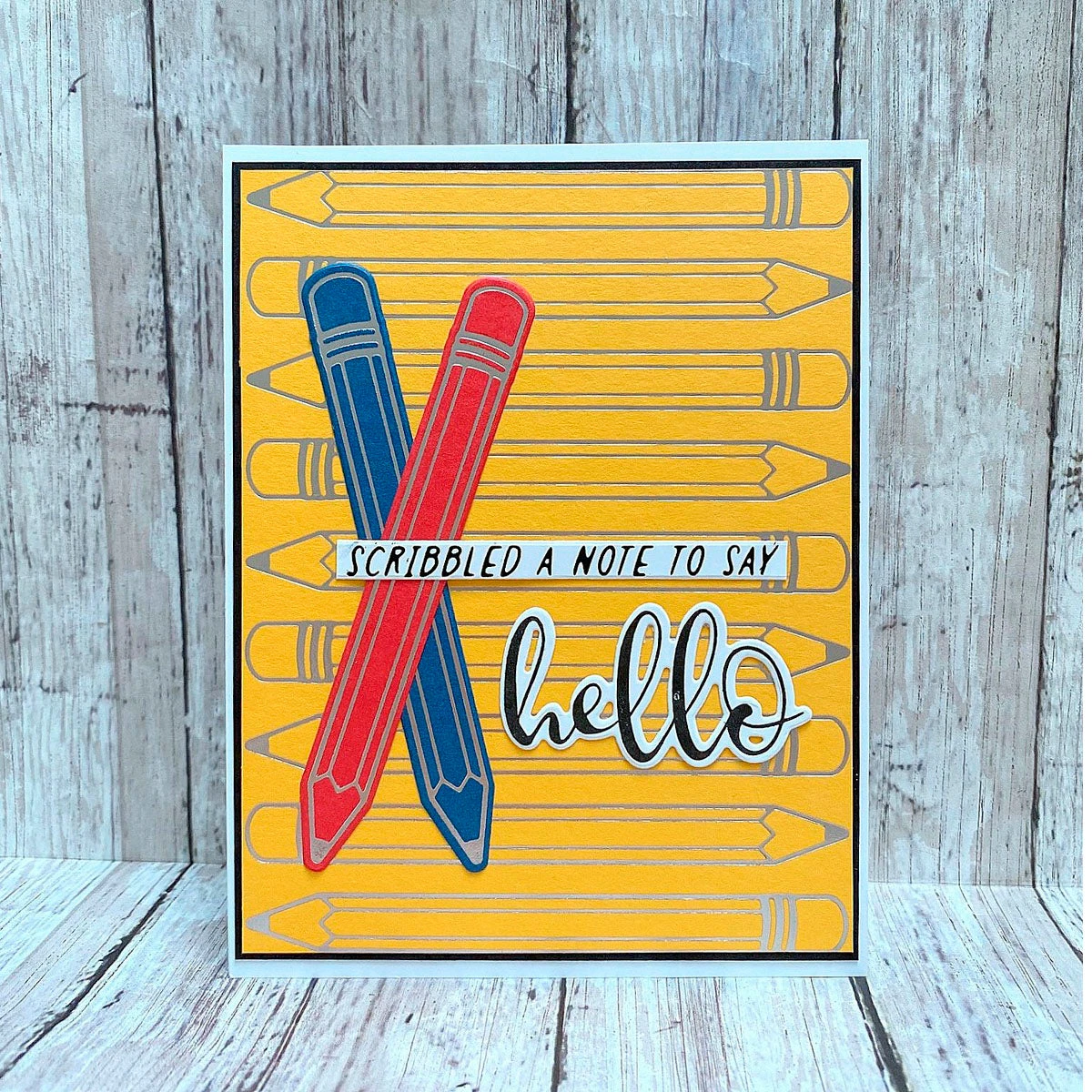 This playful set includes a full background of lined pencils, a coordinating die-cut pencil, and foil phrases like “Scribbled a note to say,” “Congrats,” “Happy Birthday,” and more. Use it with your favorite Glimmer Hot Foil System to add shimmering metallic shine to cards, tags, planners, and more. Layer with bold colors or keep it sleek and simple—the creative possibilities are endless!