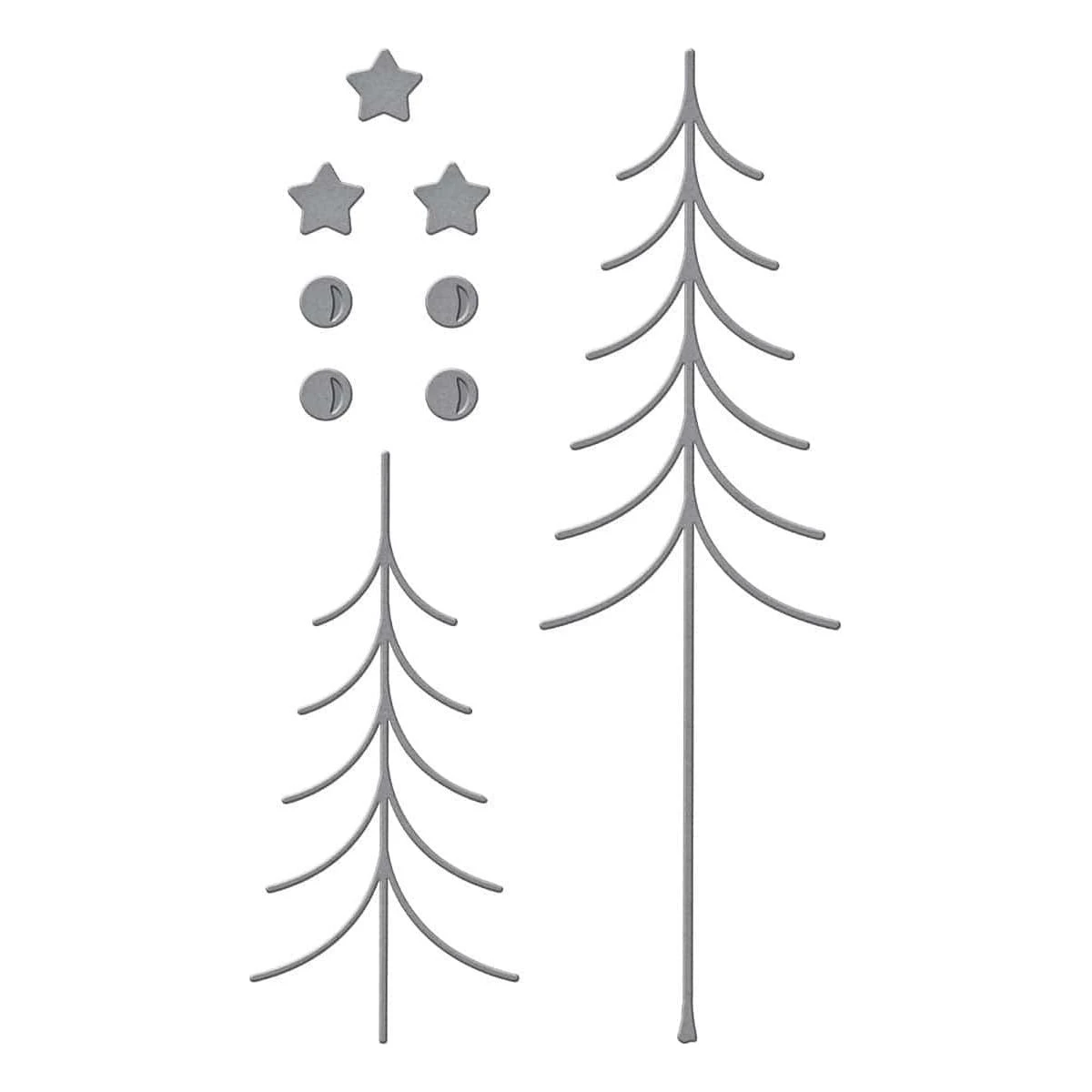 The Sealed Christmas Tree Squiggle Etched Dies are part of the Sealed for the Holidays Collection. Die-cut many of these adorable wispy trees to create a whimsical forest! Four thin metal cutting dies includes a tall thin tree and its topper to layer for more dimensional. To add more fun, there are three stars dies, and four ornaments dies in the set.