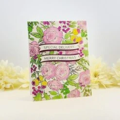 These Sealed Flowers Etched Dies are part of the Sealed by Spellbinders Collection and includes a set of three thin metal cutting dies. The largest die cuts a five-flower stem that can be die-cut many times to create a bouquet. Or simply cut one and add with a wax seal and twine to add more interest in your card project. The other dies are layering pieces to add color, texture or dimension to the design.