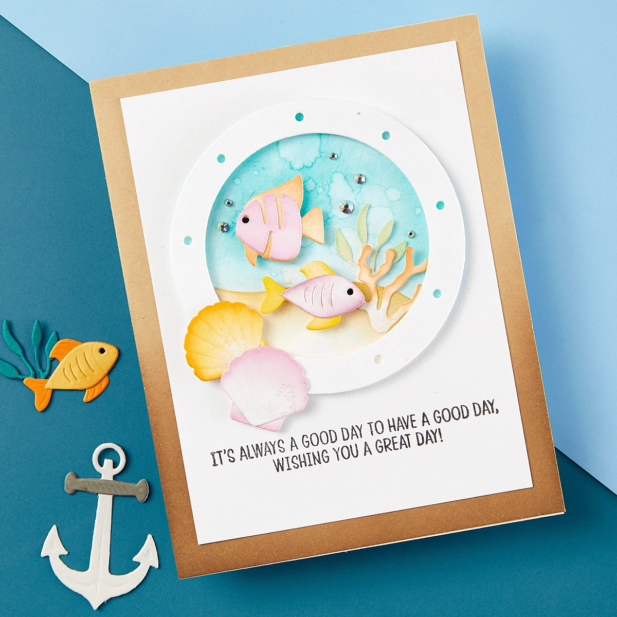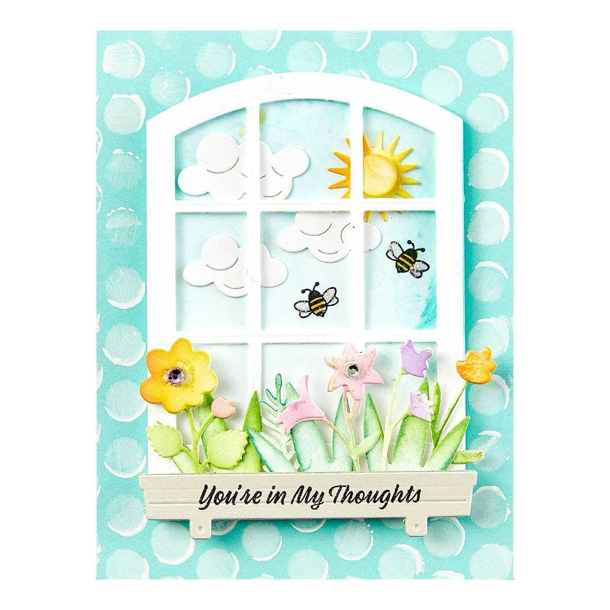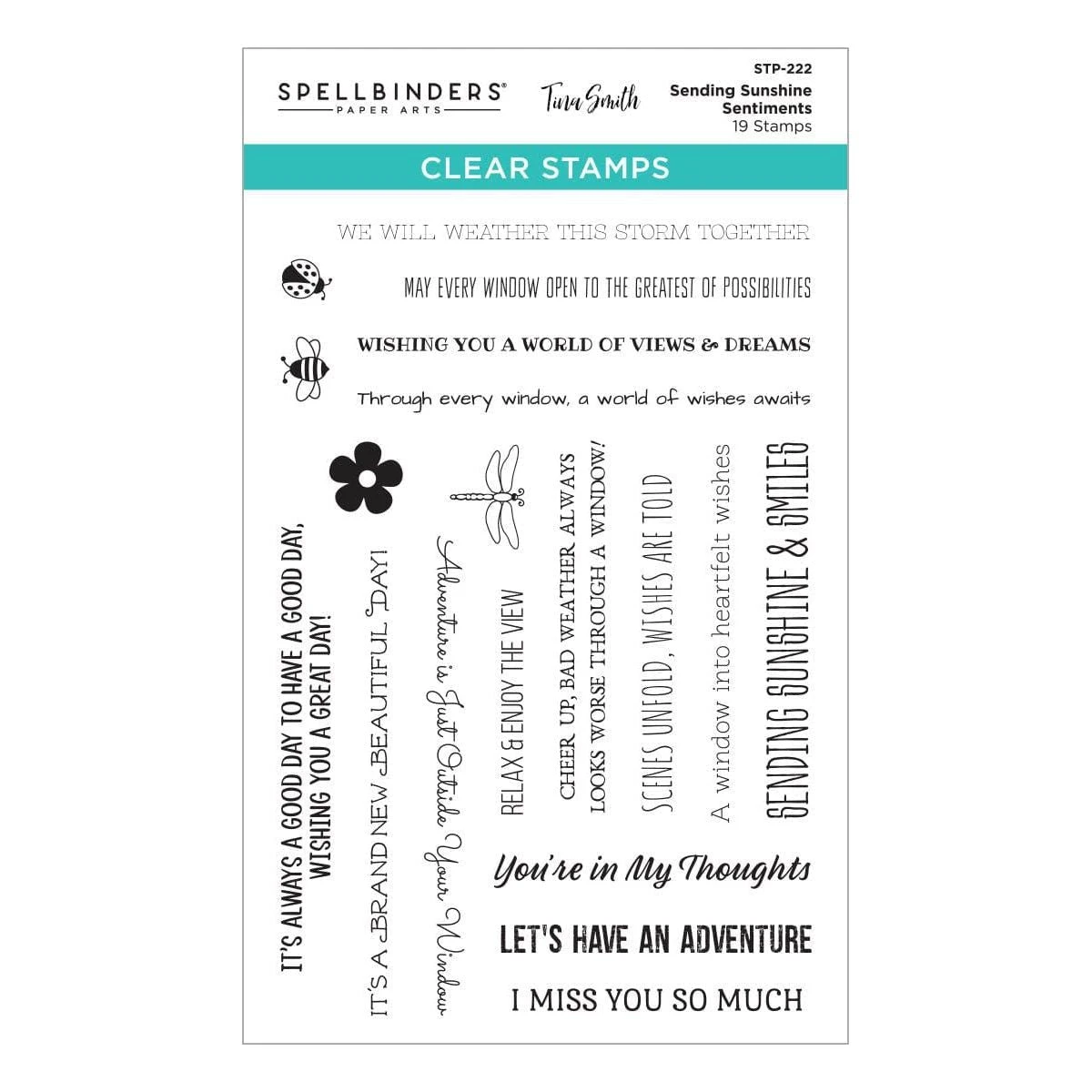 Sending Sunshine Sentiments Clear Stamp Set is from the Windows with a View Collection by Tina Smith. This fun 15 sentiments goes well with the collection. It includes clever phrases such as We will Weather this Storm Together; Through Every Window, a World of Wishes Awaits; It’s a Brand New Beautiful Day; Relax & Enjoy the View; Scenes Unfold; Wishes are Told; and four sweet icons. They are designed to work with an acrylic block and made in the USA.