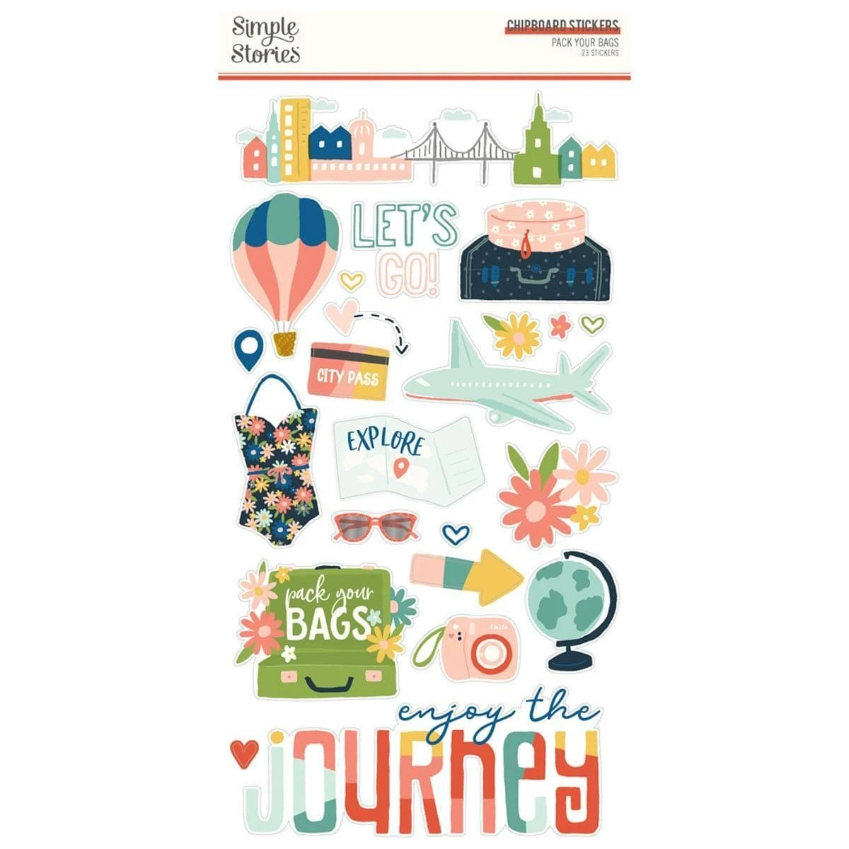 Simple Stories – Pack Your Bags Chipboard Stickers: 23 Chipboard Stickers