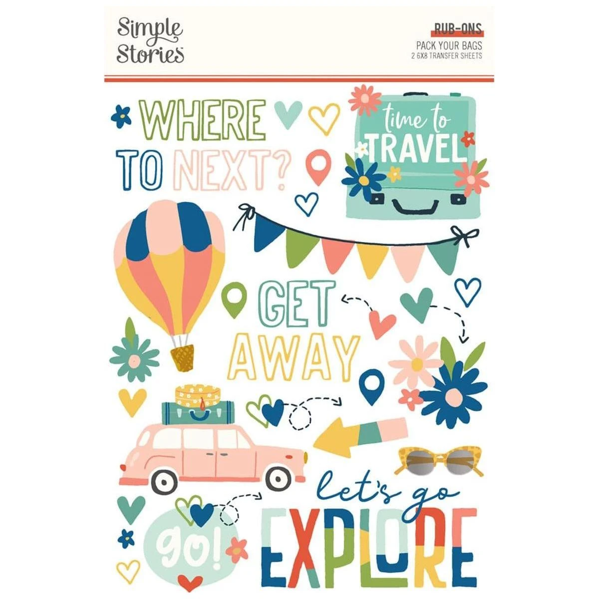 Simple Stories – Pack Your Bags Rub Ons: Rub-On Transfers on Two 6×8 Sheets