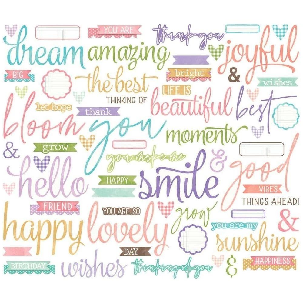 Celebrate the beauty of words with the Simple Vintage Flower Shoppe Sentiment Bits by Simple Stories! This set includes 66 delightful die-cut pieces that will add heartfelt charm to your scrapbook layouts, cardmaking projects, and DIY crafts.