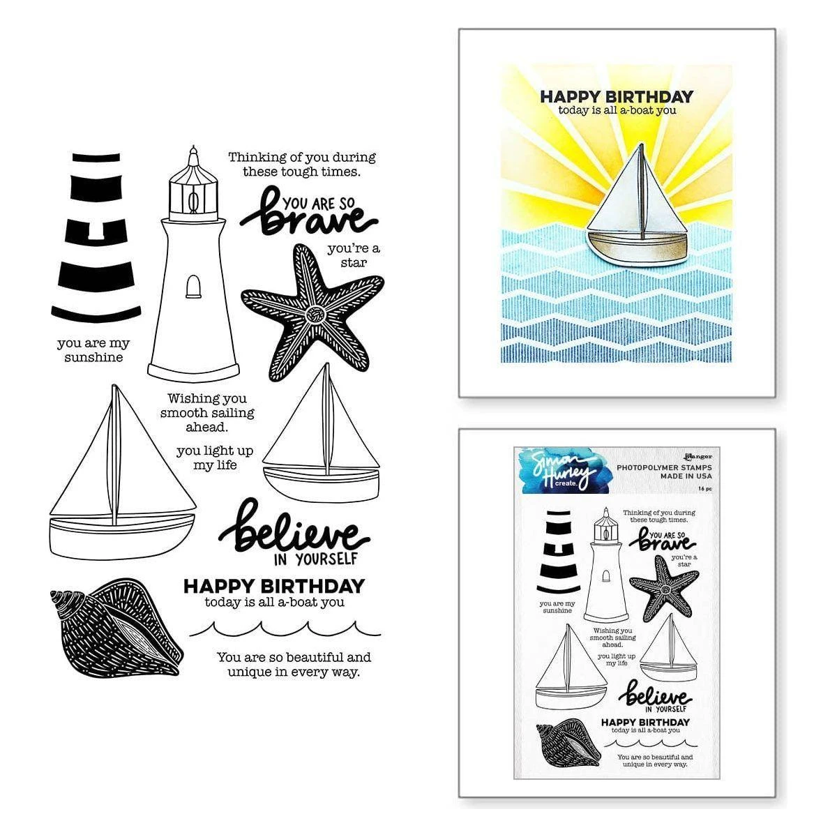 Smooth Sailing Stamp and Die Set by Simon Hurley is a perfect pairing to cut out all the beachy designs in this adorable set! Mix and match the nine greetings, along with using the textured die-cut starfish and conch shell to create a sweet encouragement card. Many options for your card creations!