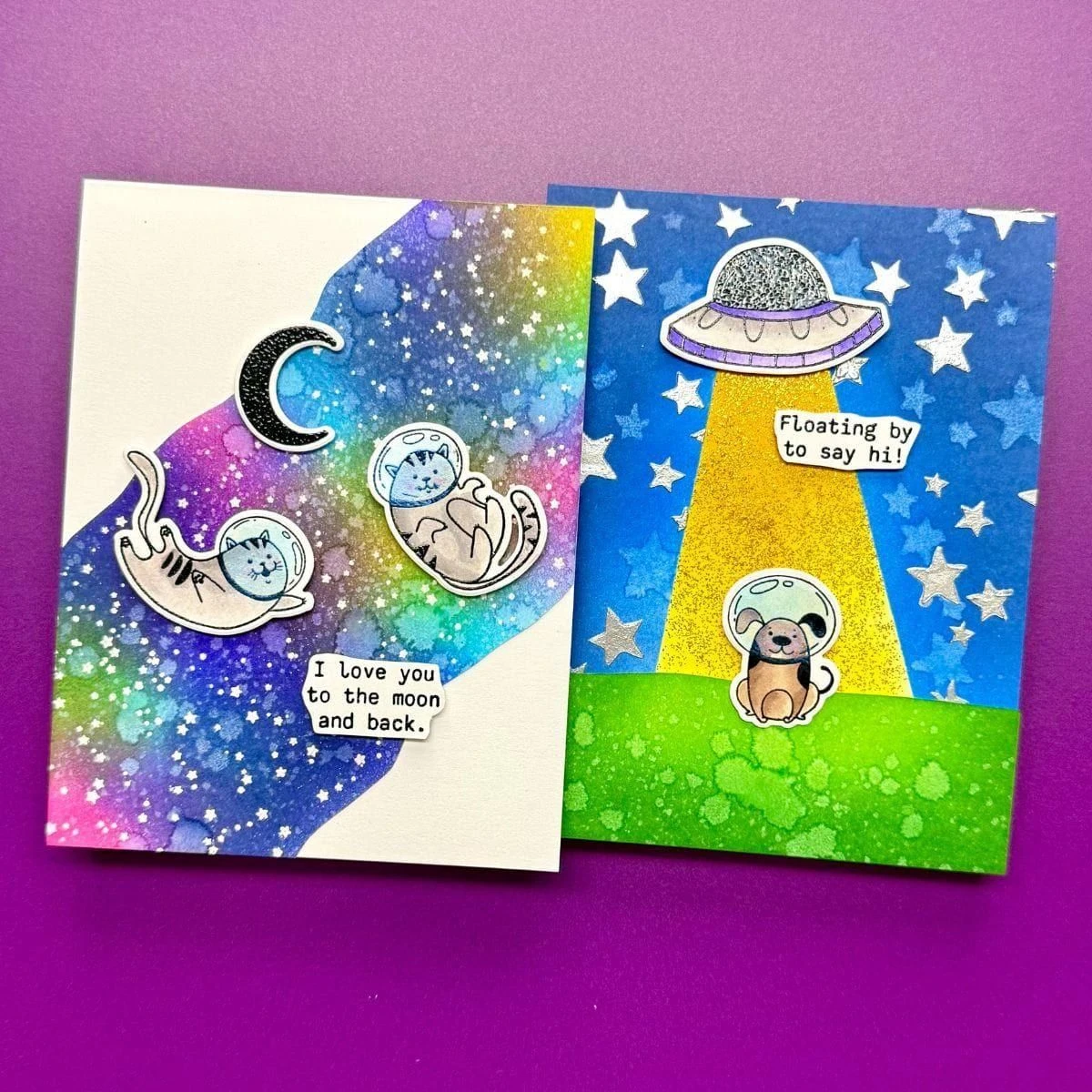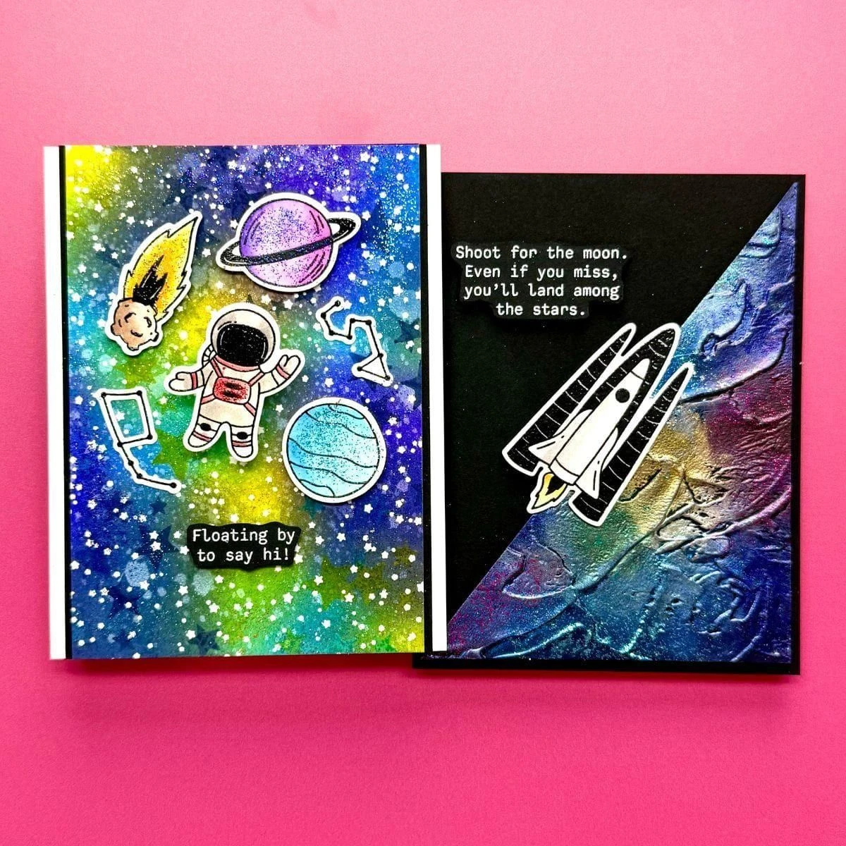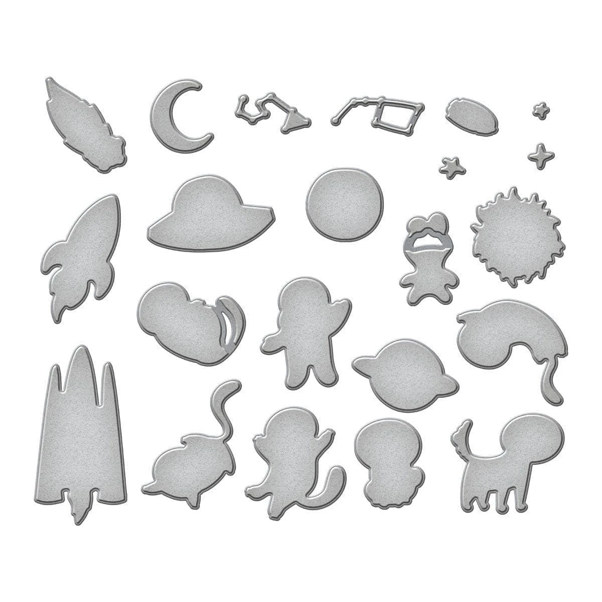 Blast off with Space Friends Stamp & Die Bundle! This set includes S7-271 Space Friends Etched Dies and HUR88769 Ranger Space Friends Clear Stamp Set. You’ll find yourself out of the world with these cute critters! Not only does the set include astronauts, planets and rocketships, you can also bring furried friends along for the ride! This included set of 22 dies cuts out the planets, aliens, constellations and space explorers so you can create a starry scene. Blast off!
