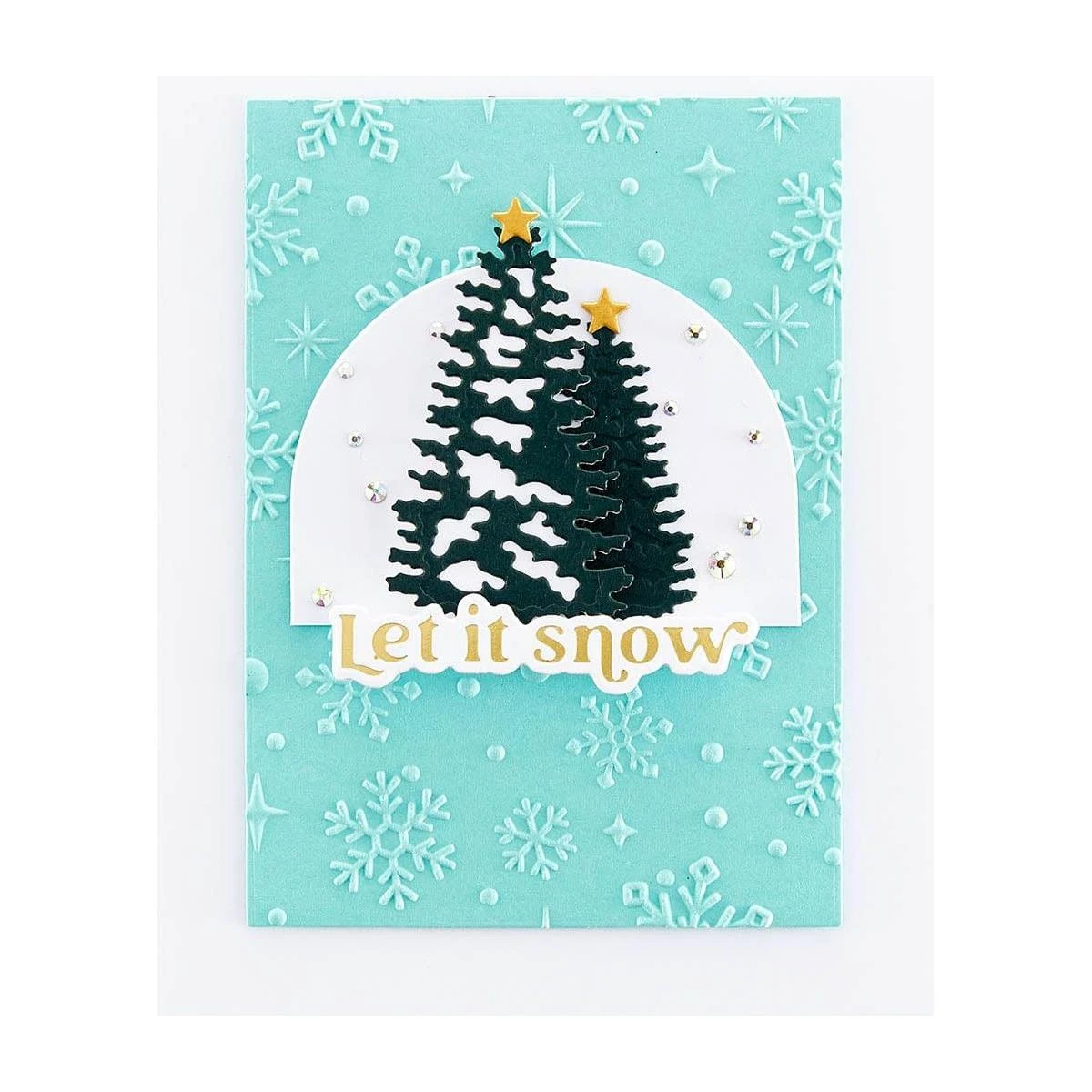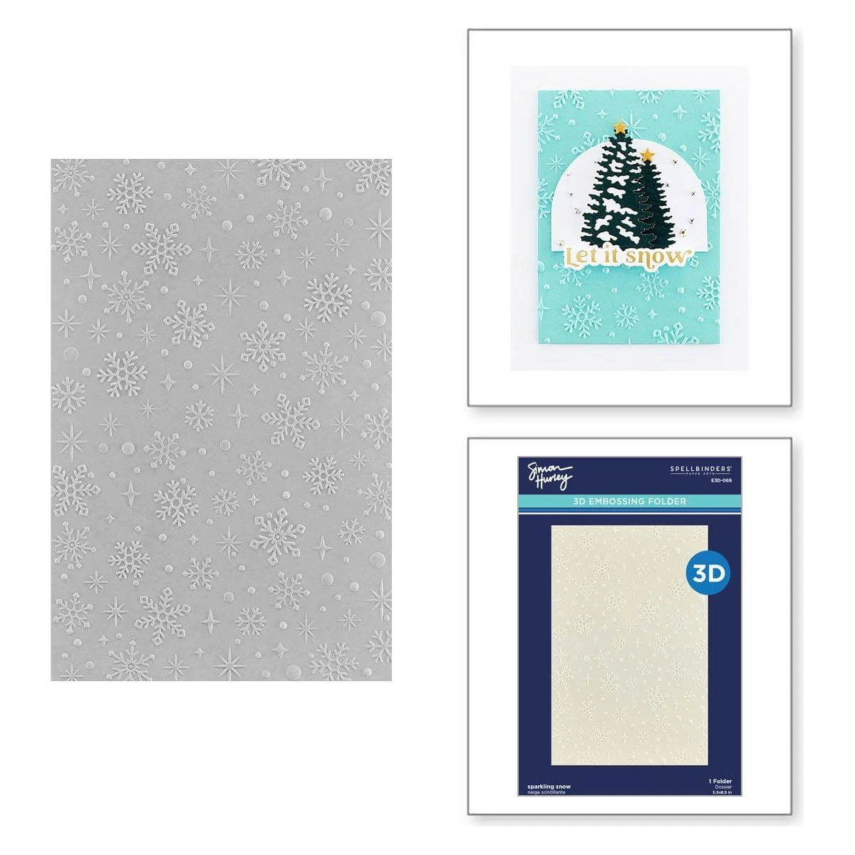 Sparkling Snow 3D Embossing Folder is part of the Simon’s Snow Globes Collection by Simon Hurley. It is a 5.50 x 8.50-inch embossing folder with a wonderful combination of sparkling stars, dots and snowflakes fill the background. A fabulous addition to mix and matching with the other sets in this collection!