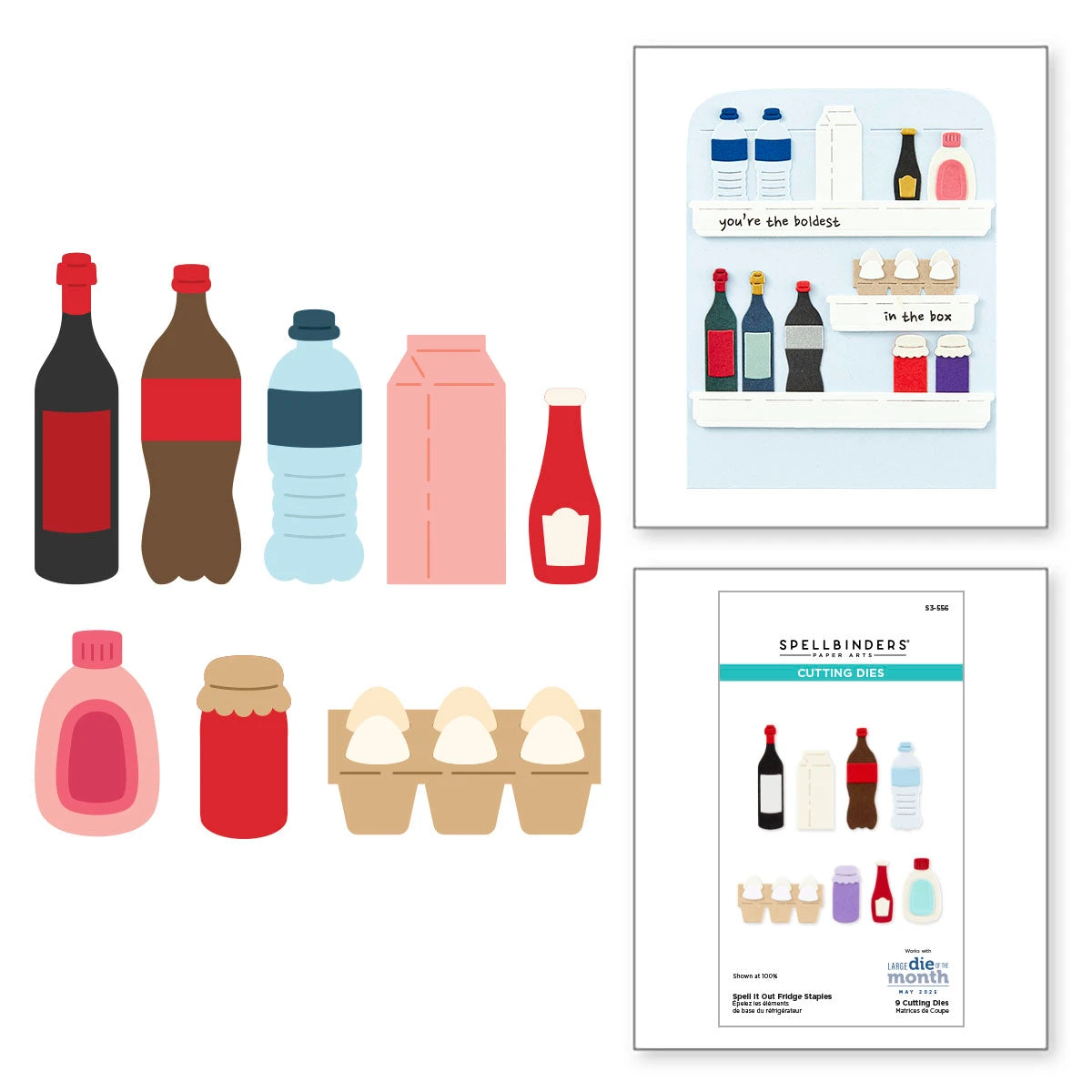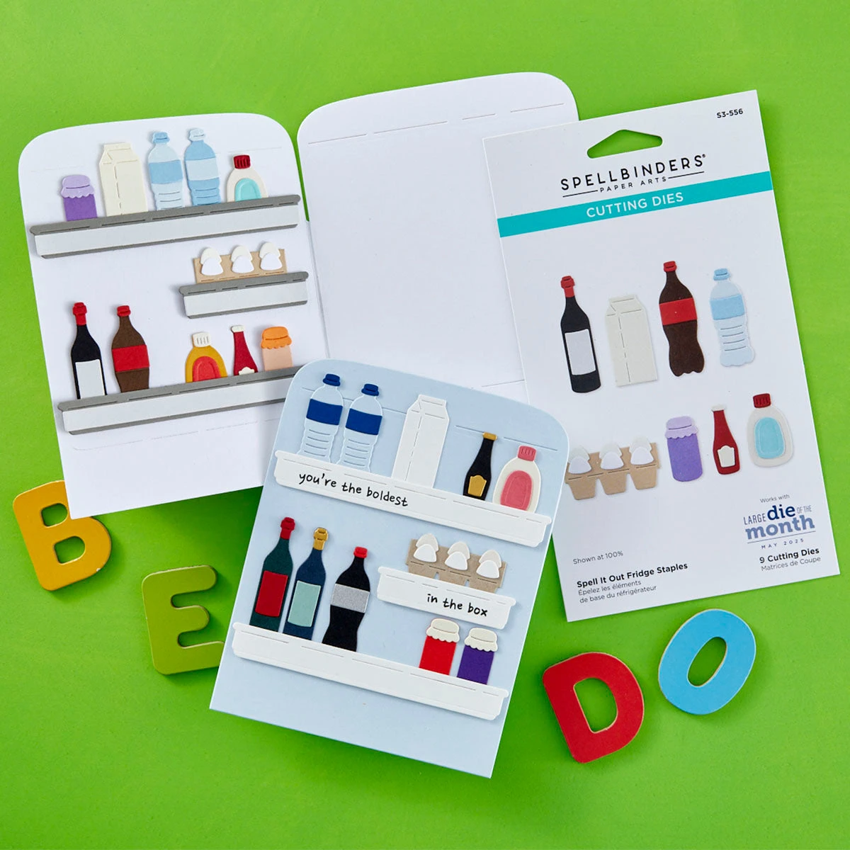 Spell It Out Fridge Staples Etched Dies – Coordinates with May 2025 Large Die of the Month Club – Add a splash of charm and creativity to your handmade cards with the Spell It Out Fridge Staples etched dies. Designed to coordinate perfectly with the Large Die of the Month Club projects, this whimsical set features miniature fridge essentials—from bottles and cartons to eggs and condiments—ready to fill your paper pantry.