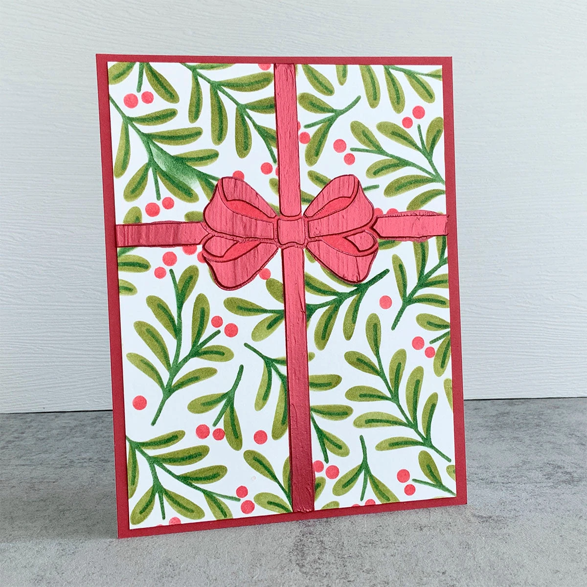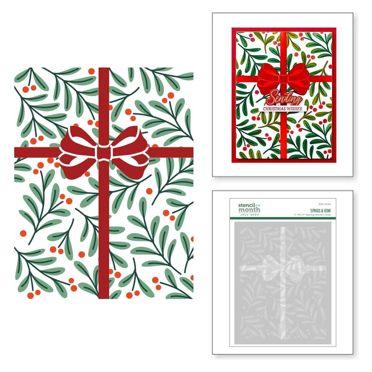 Sprigs & Bow – Stencil of the Month – Released July 2024 to our New, Stencil of the Month Club creates a beautiful background for cards, décor, gift card holder, gifts, and more!